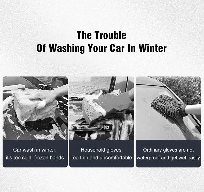 The Trouble Of Washing Your Car In Winter Car wash in winter,it's too cold , frozen hands Household gloves ,too thin and uncomfortable Ordinary gloves are not waterproof and get wet easily