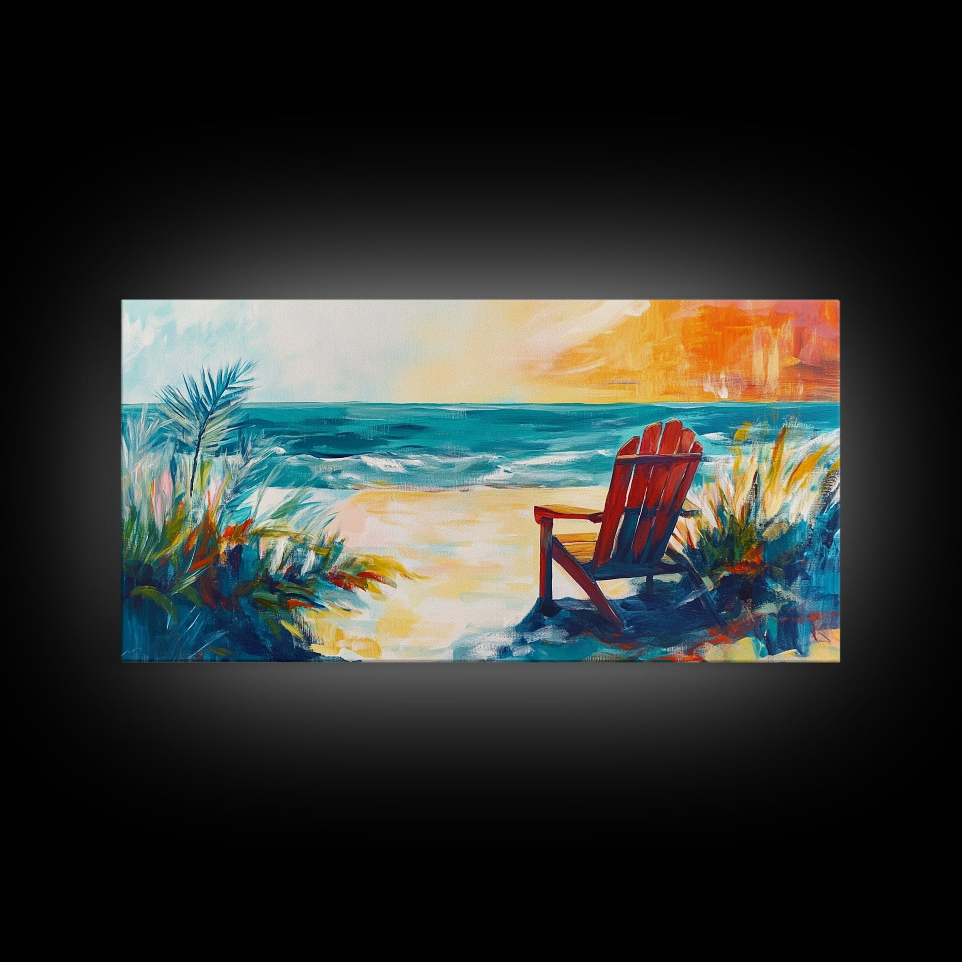 Beach Chair, Coastal Painting, Nautical Wall Art, Ocean Painting, Seascape Painting, Framed Canvas Print, Extra Wide Art, Coastal Decor