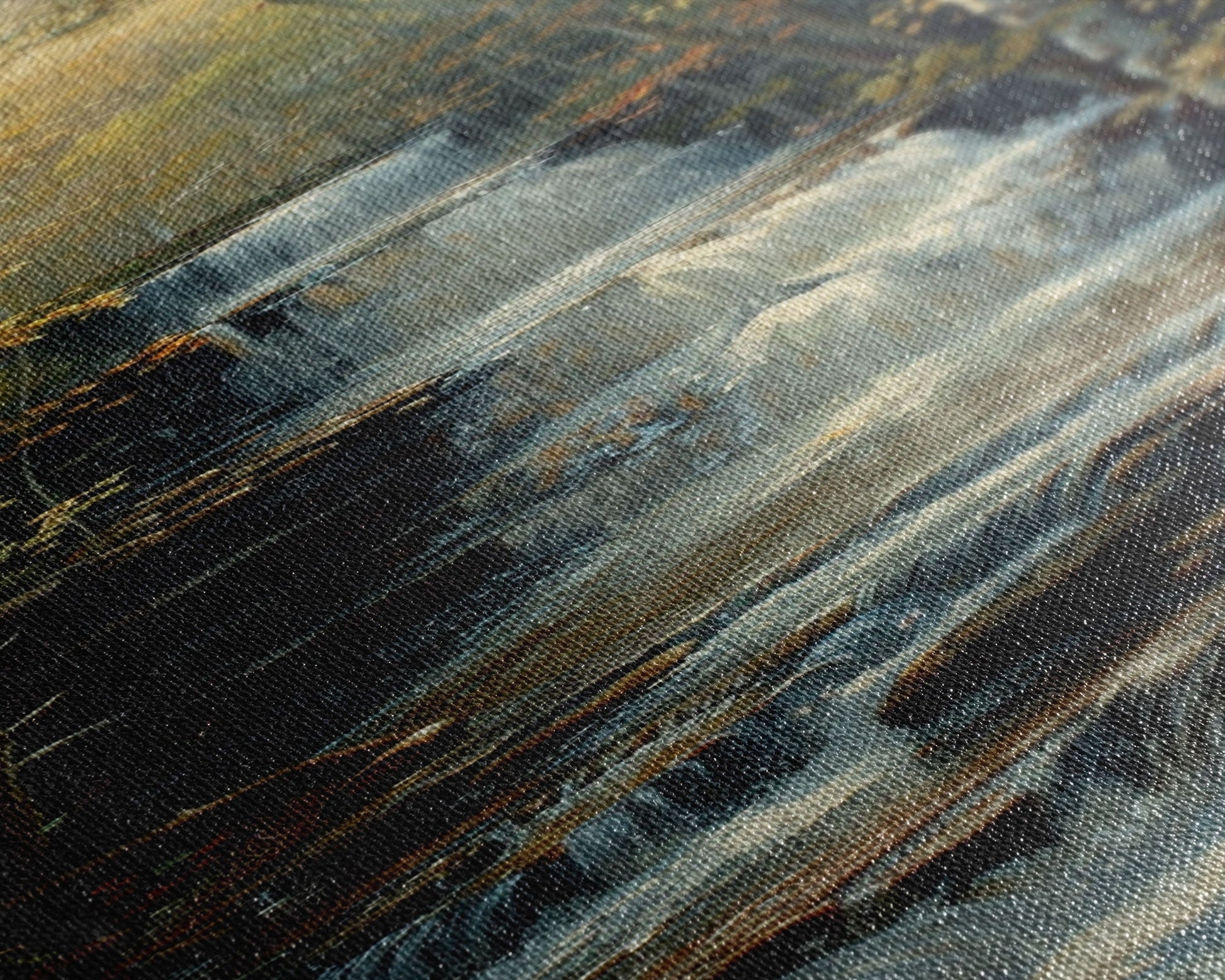 Most of our canvases are made in the USA, with the exception of canvases ordered with the light oak unstained frames, and any large canvases (24x48, 30x60, 16x48 and 20x60) ordered WITH a frame. These are temporarily made in and shipped from Europe, while we try to find a more consistent supplier in the USA.