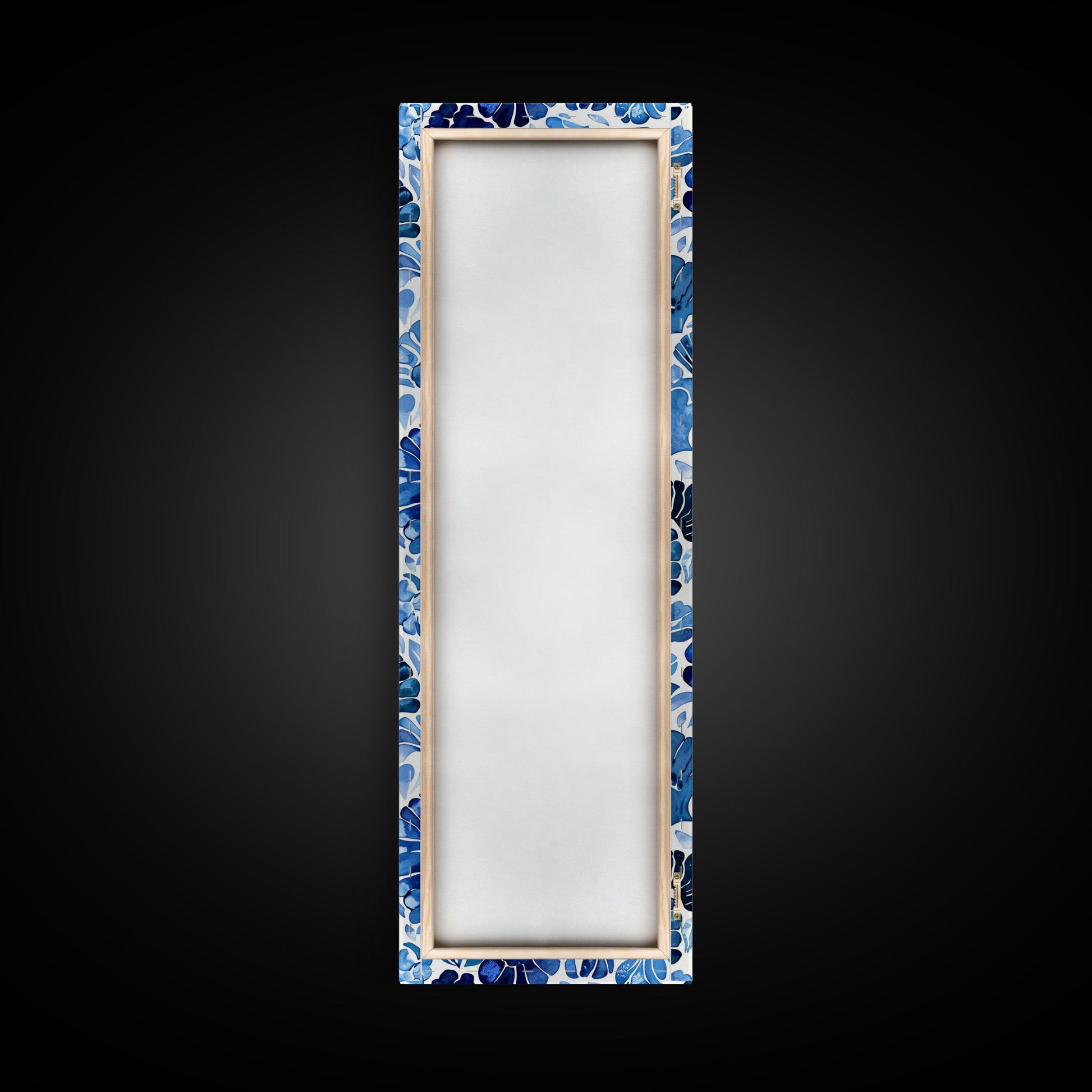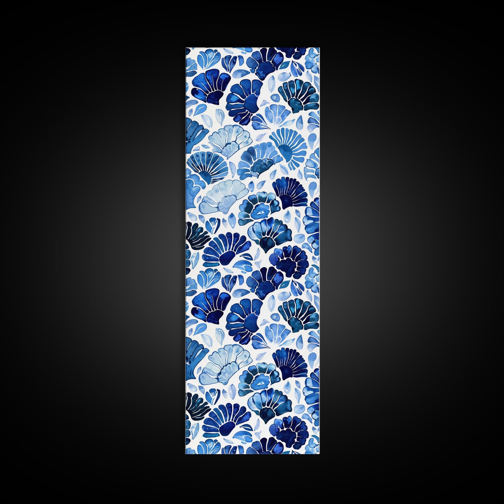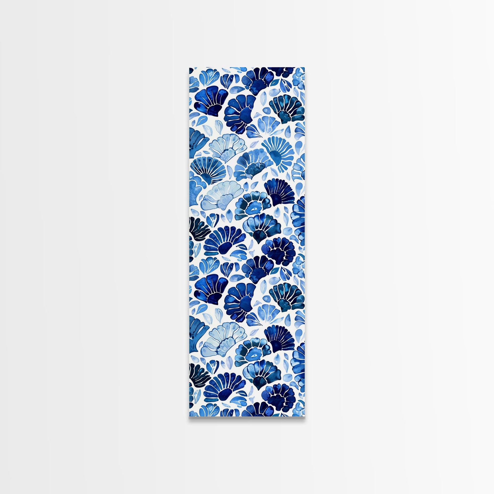 Blue and White Floral Pattern on White Background - Framed Canvas Print, Boho Art, Skinny Art, Tall Art, Midcentury Modern Art, Bedroom Wall Decor