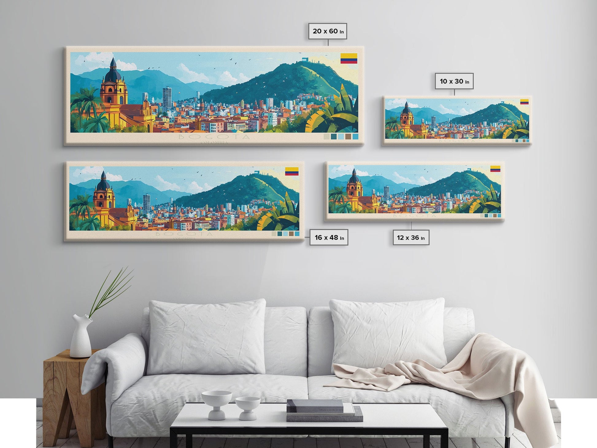 Bogota, Colombia Travel Poster Panoramic Canvas Print, Bogota, Colombia Painting, Colombia Art, Bogota Travel Art, Guest Room Painting
