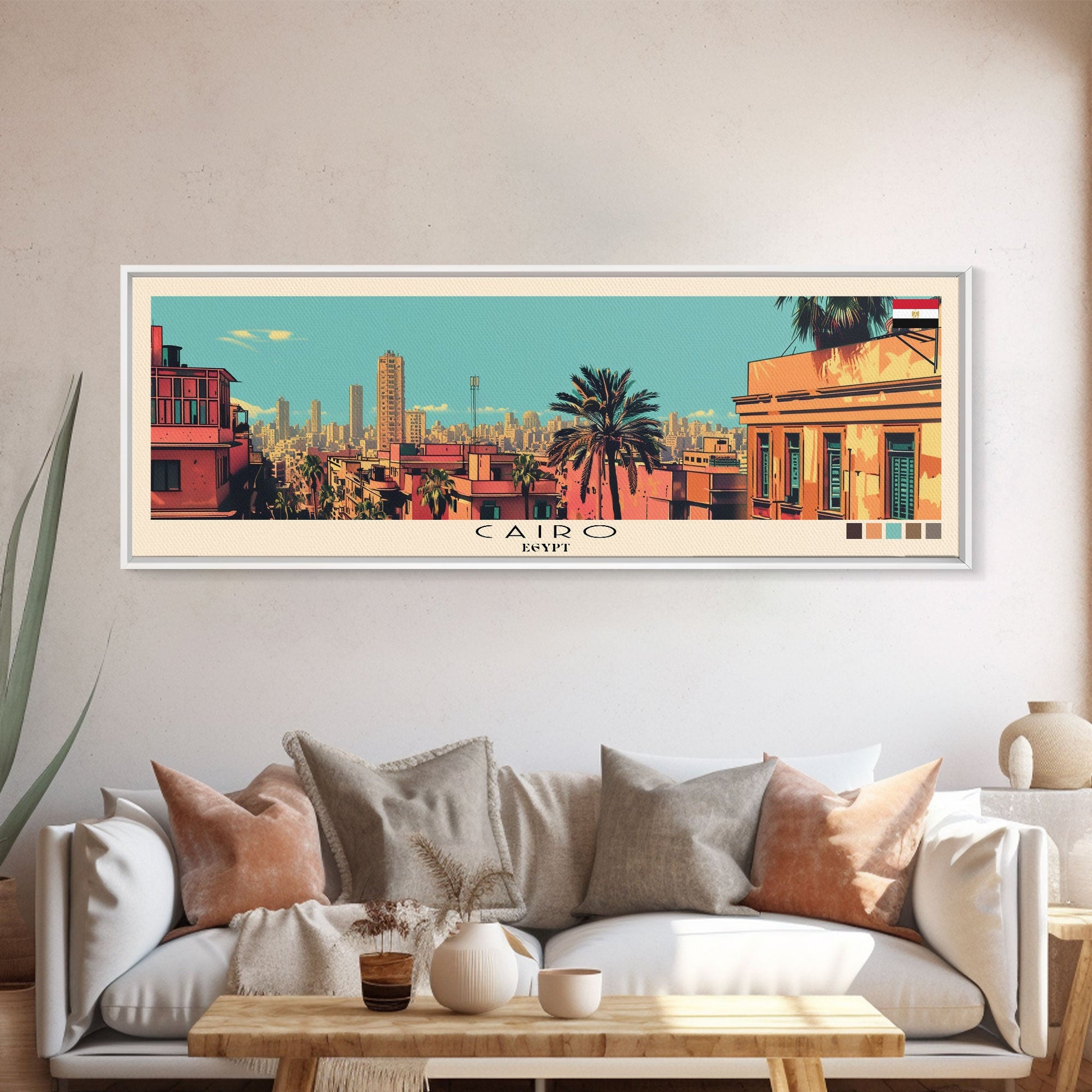 Cairo, Egypt Panoramic Canvas Print, Cairo, Egypt Painting, Egypt Art, Cairo Travel Poster, Travel Art, Housewarming Gift