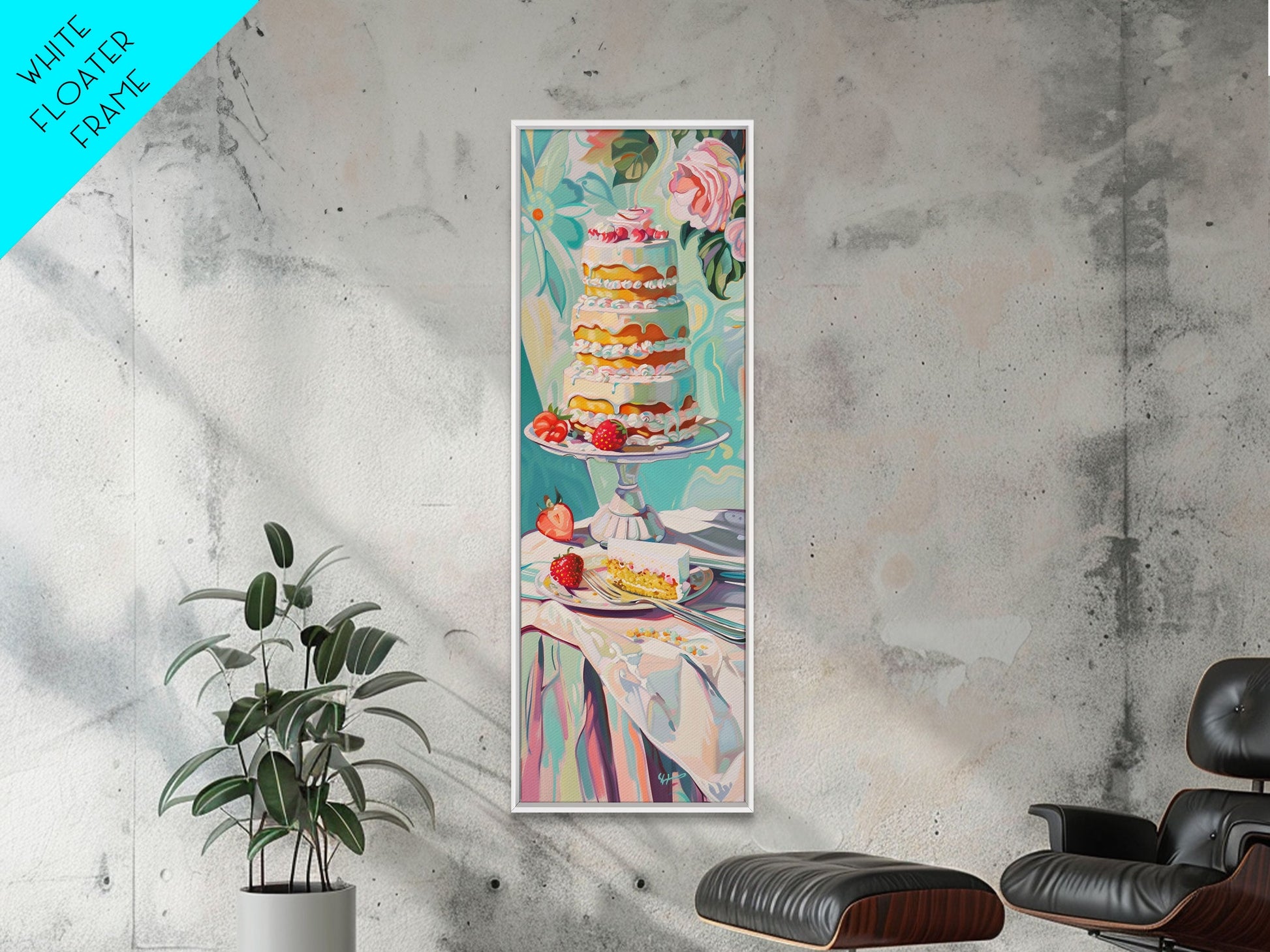 Cake Wall Art Framed and Printed on Canvas, Wall Art for Kitchen or Bakery, Food Art Print, Tall and Narrow Colorful Art for Kitchen