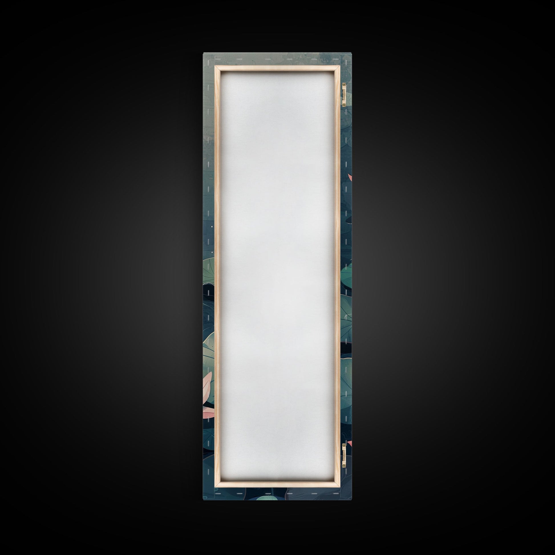 Calm Water Lilies Floating On Still Pond With Subtle Ripples Ukiyo-e Skinny Tall Wood Block Framed Canvas Print Japanese Style Art