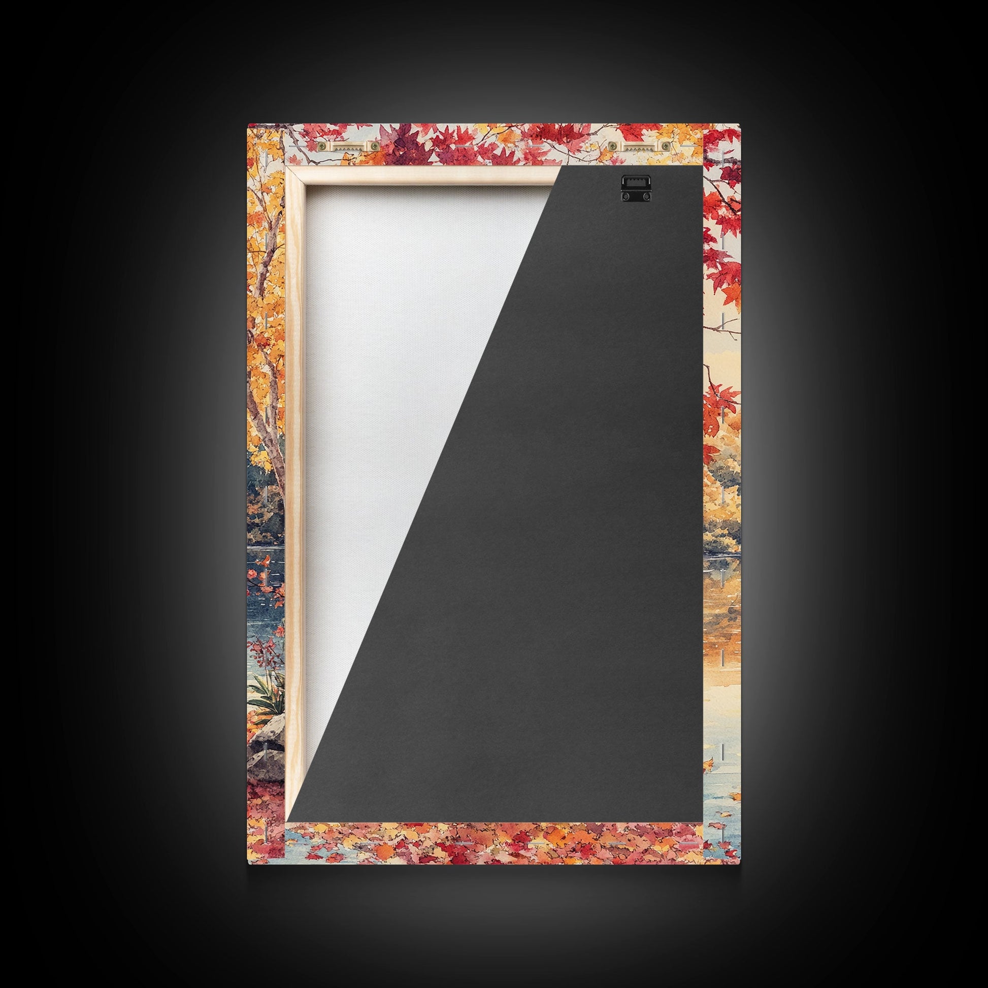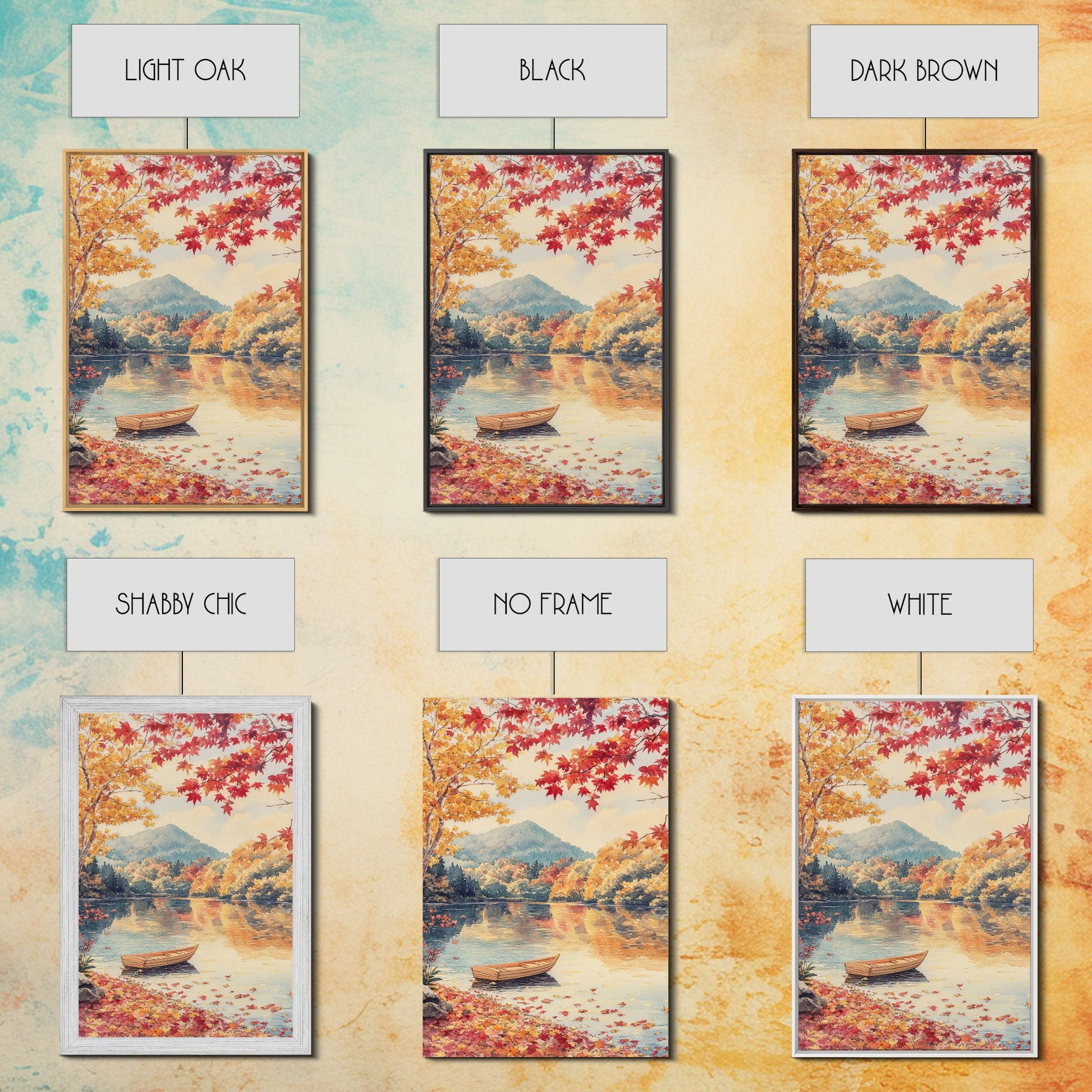 Canoe On A Serene Fall Lake, Framed Canvas Print, Autumn Decor, Fall Wall Art, Fall Poster, Autumn Prints Wall Art
