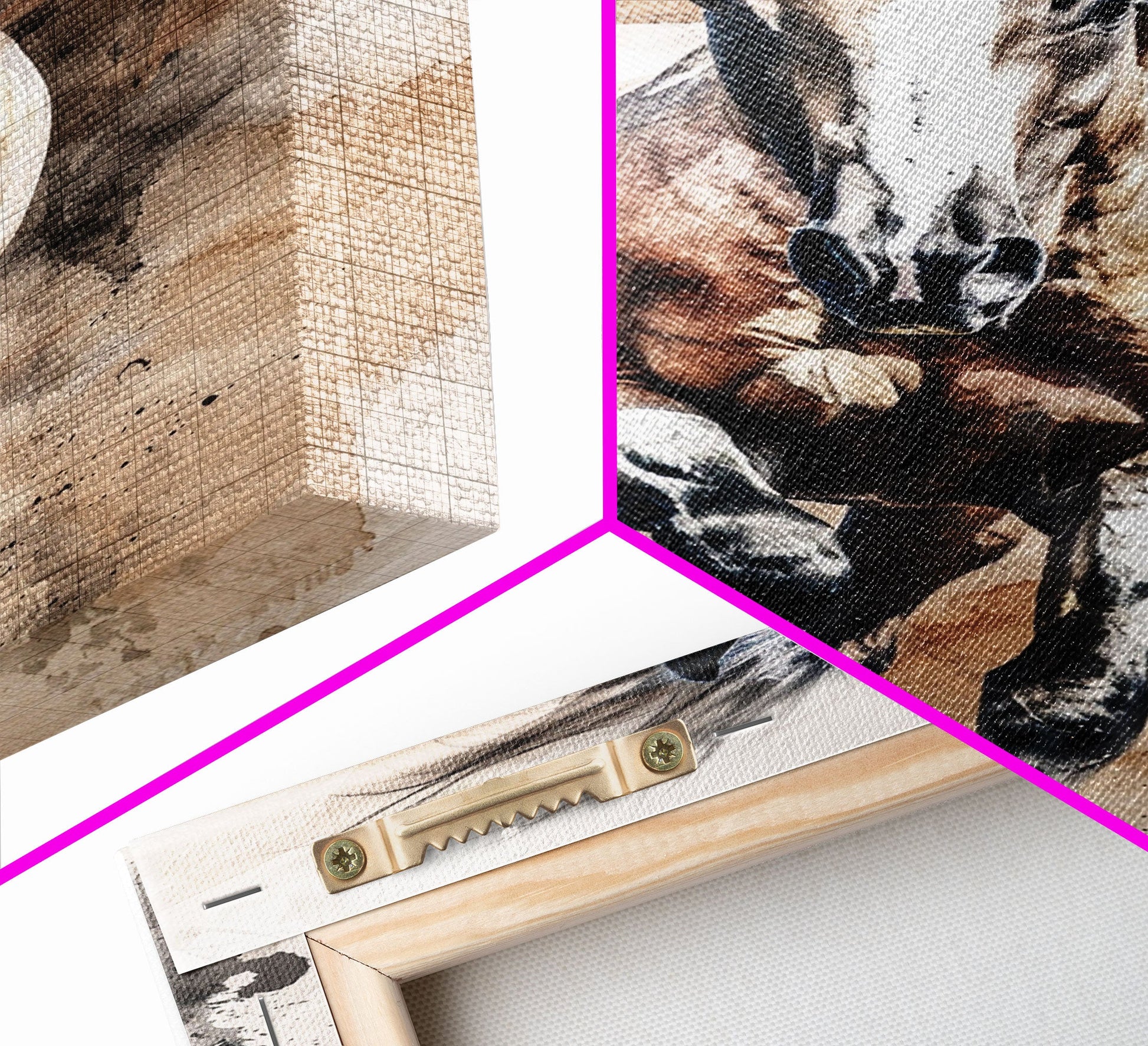 Charging Horse with Dust - Framed Canvas Print, Intense Living Room Art, Bold Bedroom Decor, Equestrian Art, Wall Art
