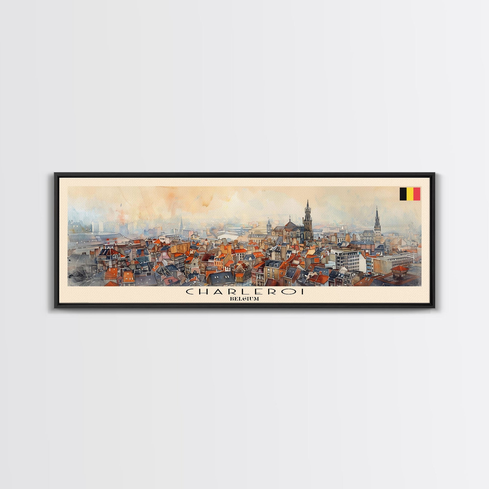 Charleroi Belgium Travel Print Wall Art, Panoramic City Art, Travel Art, Wall Decor, Vacation Gift, Framed Canvas Print Or Metal Art