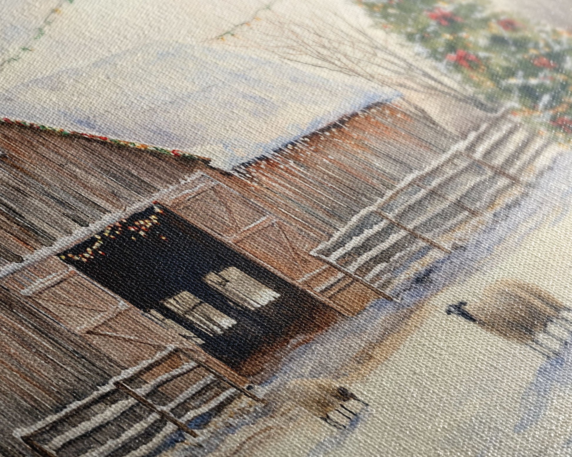 Christmas Barn Snow Sheep Canvas Print Christmas Farmhouse Decor Rustic Christmas Wall Art Framed Canvas Print Christmas Outdoor Decor