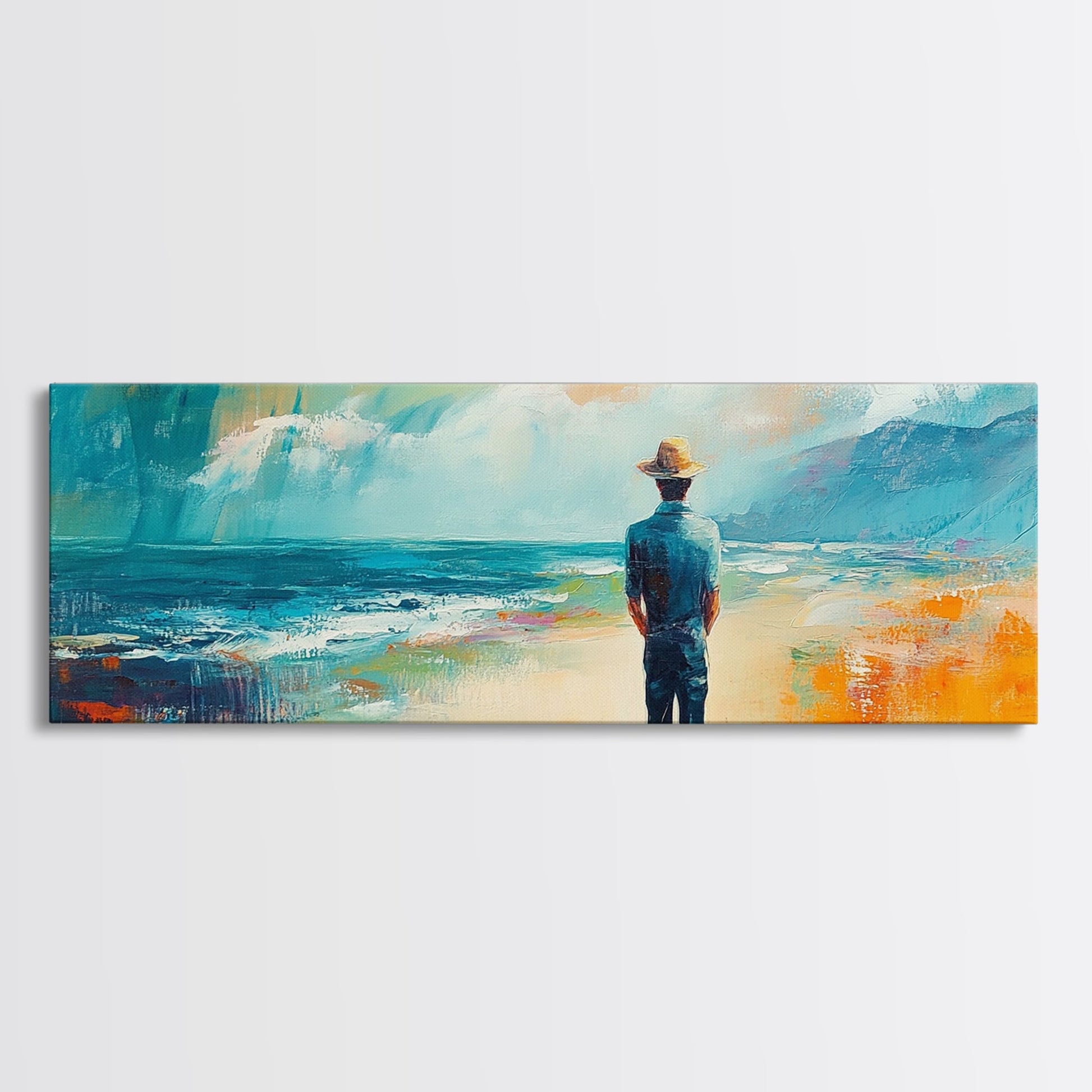 Coastal Wanderer, ocean painting, seascape painting, beach decor, nautical wall art, panoramic art, coastal landscape art, framed canvas print
