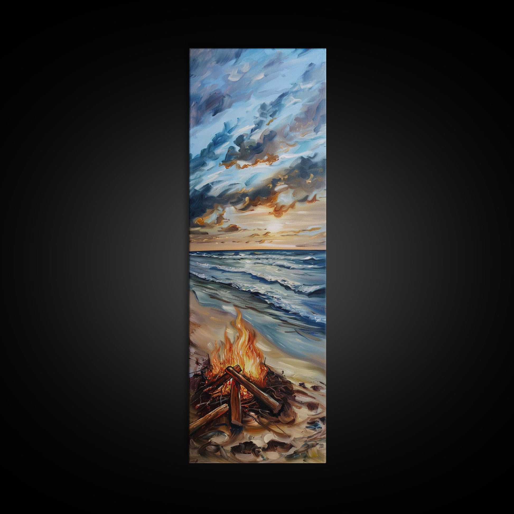 Coastal Watercolor Inspired Canvas Art Printed and Framed, Ocean Wave Beach Wall Art Print, Vertical Wall Art, Framed Bedroom Wall Art