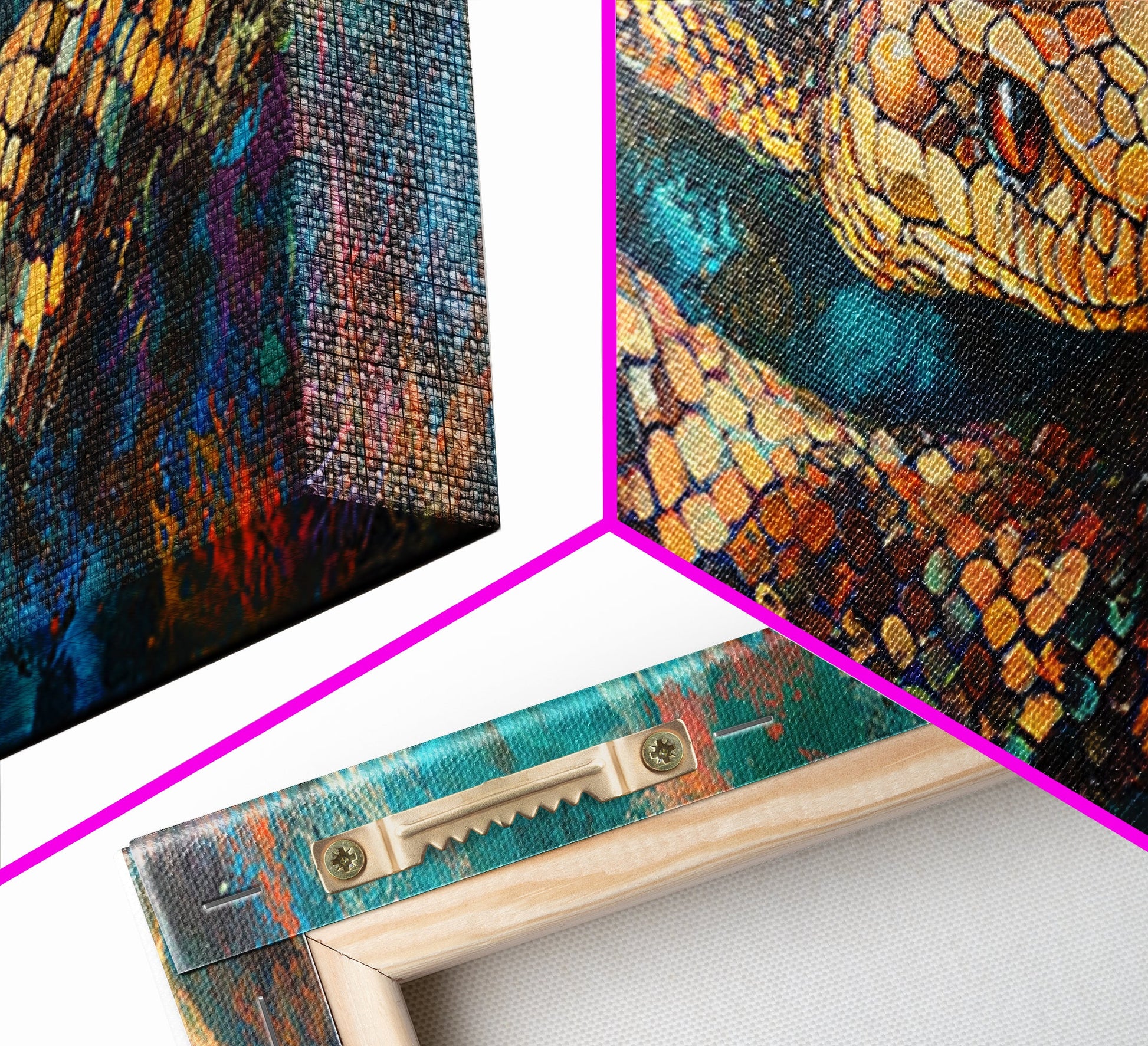*SHIPPING: Every canvas is carefully wrapped in bubble wrap and foam corner protectors, and shipped fully assembled and ready to hang with sawtooth hangers in a flat box. All you need is a hammer!