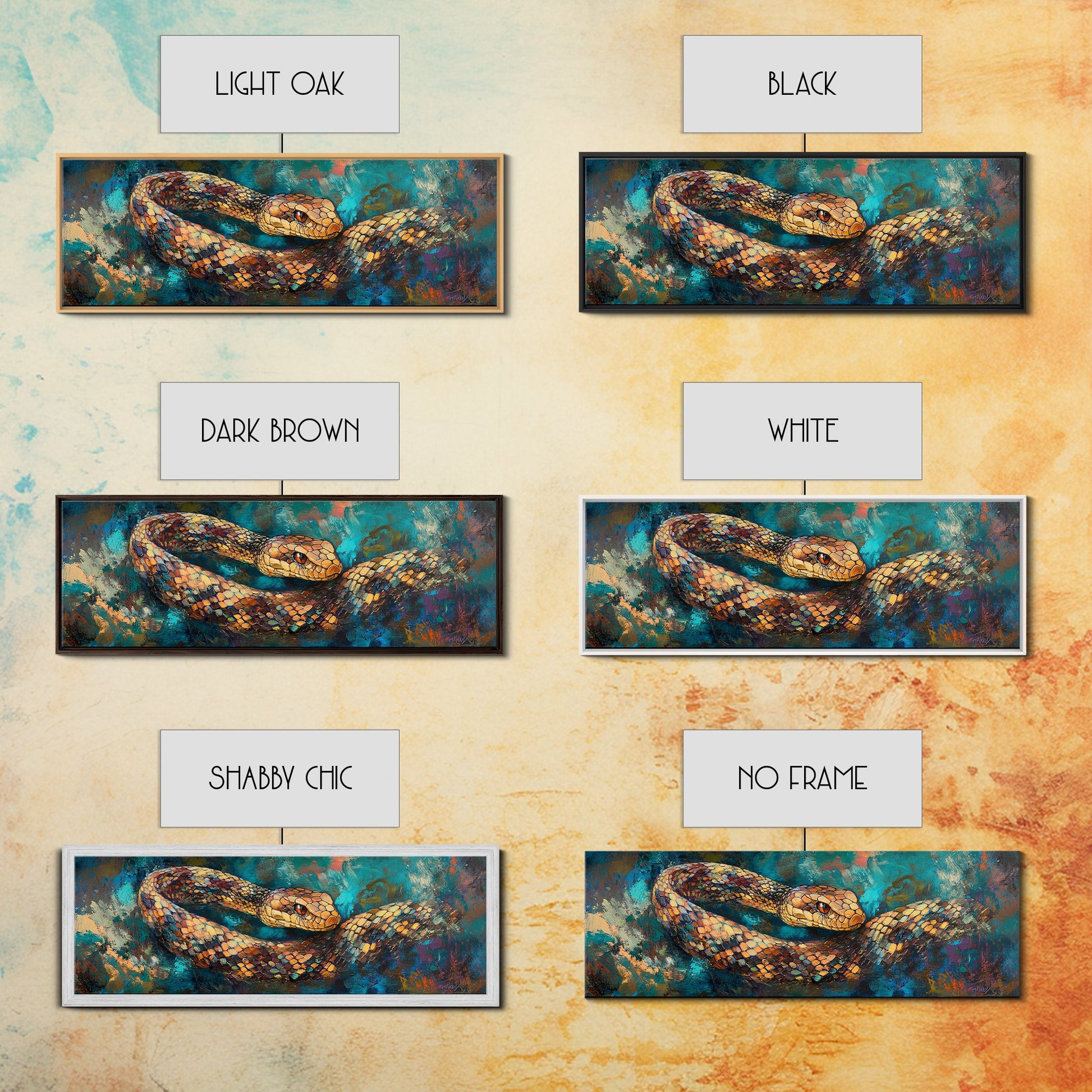 Coiled Serpent, moody art, snake painting, dark romance art, gothic decor, rustic wall art, panoramic wall art, framed canvas print
