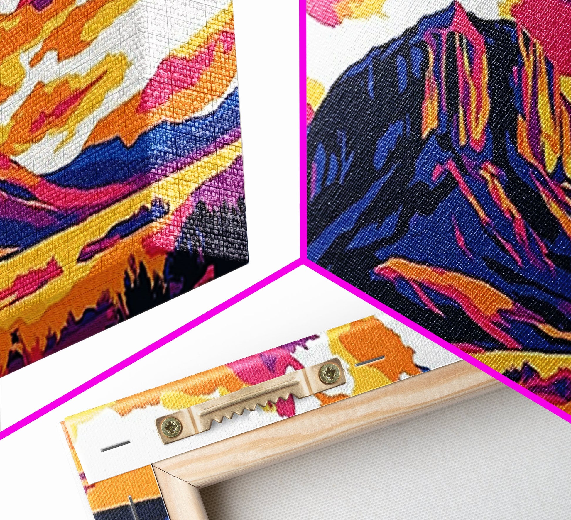 Hello and thank you for taking the time to view our modern high quality giclée artwork! We offer both posters and stretched canvas prints. Our posters are printed on Ultra Matte 60 lb / 230 GSM high quality photo paper, with a thickness of 10 mil. Our canvases are printed on museum grade 350 GSM canvas material with ECO friendly archival grade ink, then hand stretched and stapled over premium, FSC certified and shrink resistant frames. Designed and built to last a lifetime.