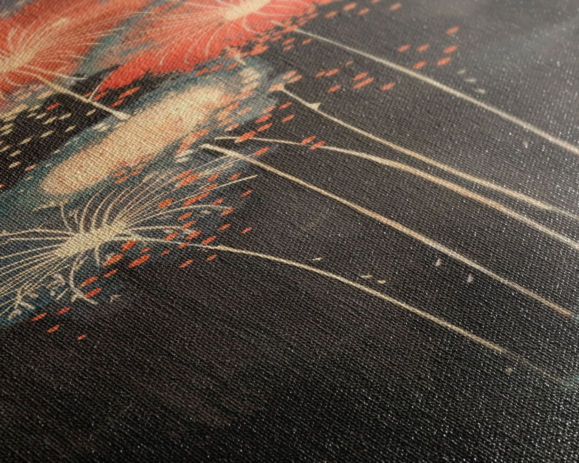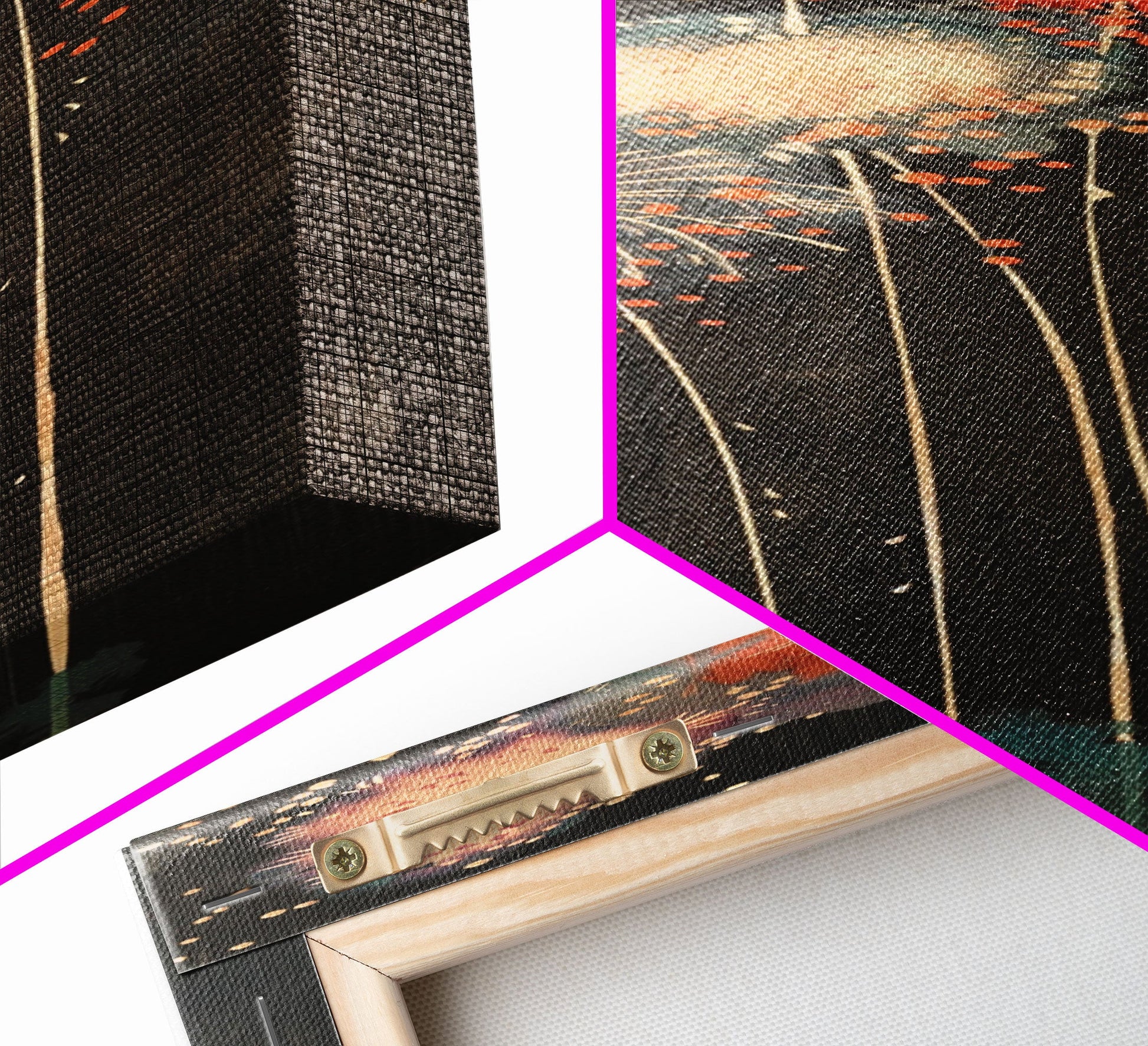 Colorful Fireworks Display Against A Dark Night Sky, Skinny Art Tall Wall Art Framed Canvas Print Japanese Style Art