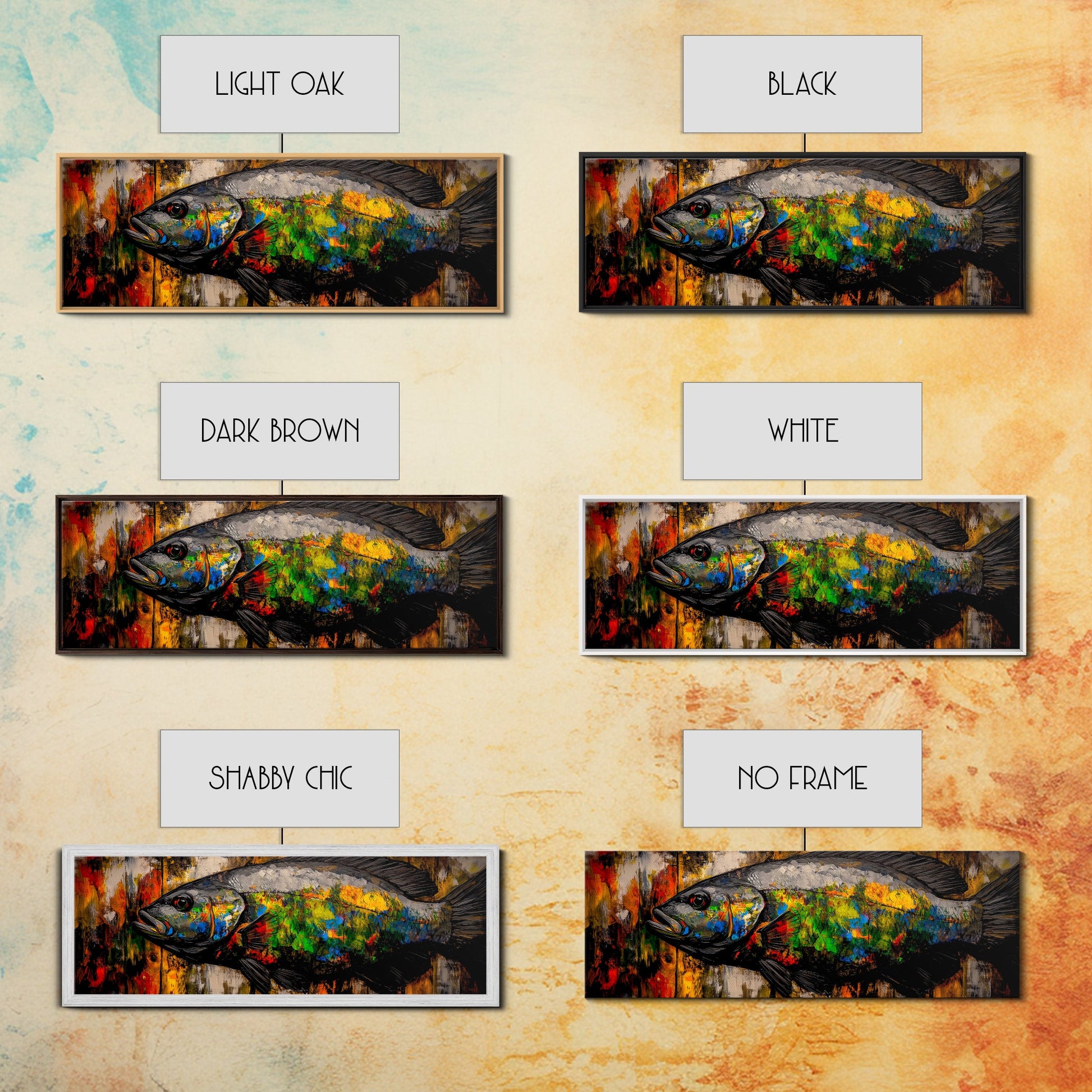 Colorful Fish, Rustic Wood, Vibrant Art, Wildlife Painting, Framed Canvas Print, Nature Wall Art, Fishing Cabin Decor, Unique Gift Idea