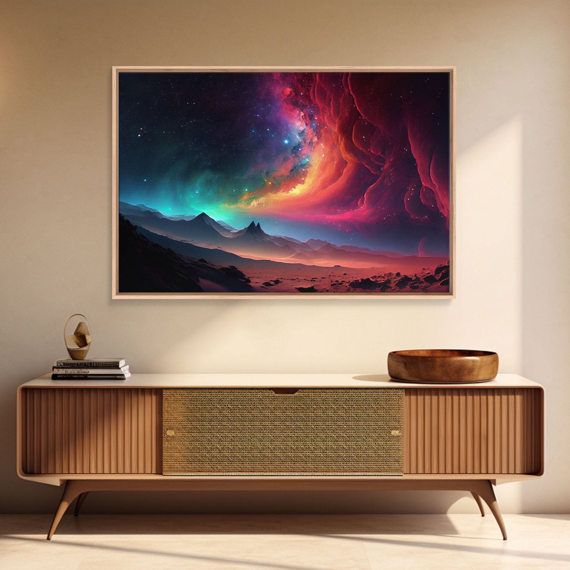 Colorful Galaxy Full of Stars, Framed Canvas Print, Unique Wall Art, Large Format Art, Retro Synthwave Style Space Art