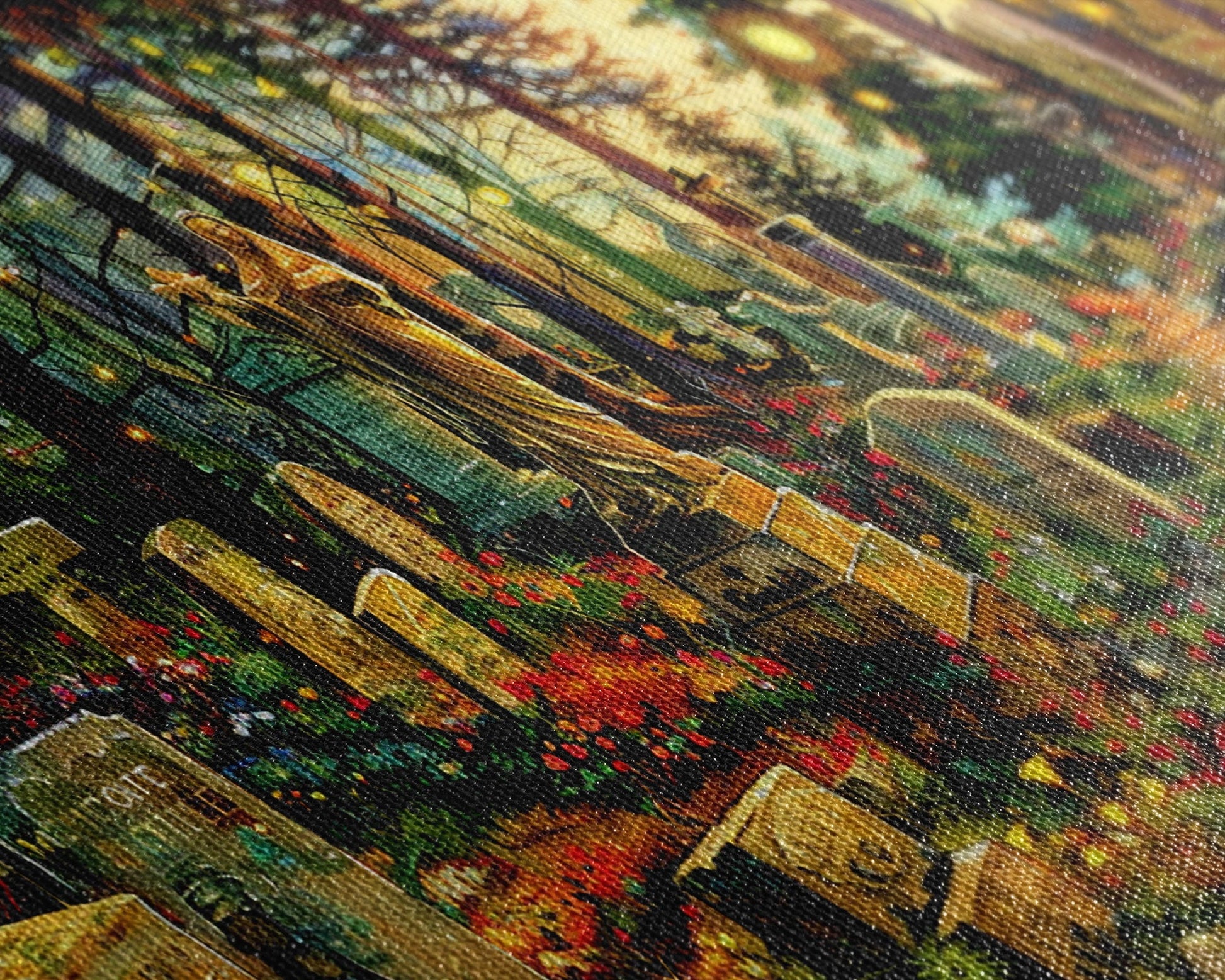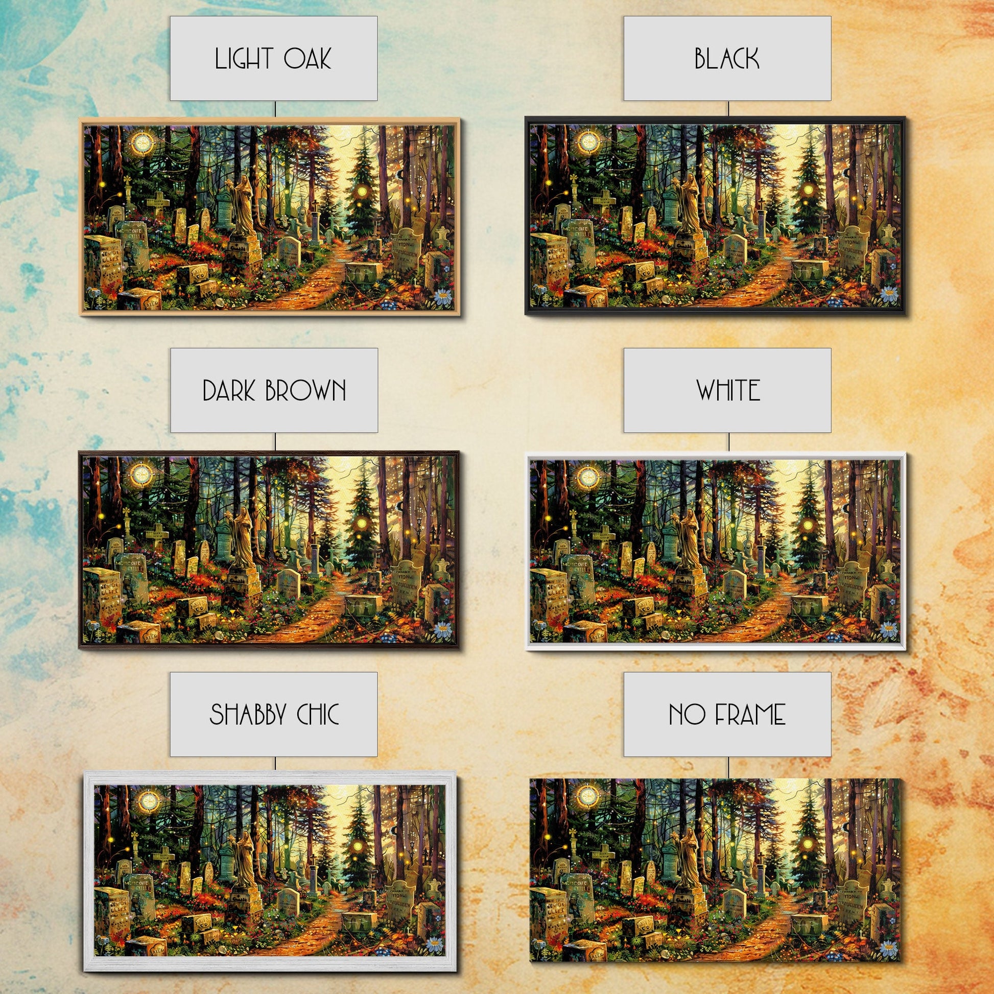 Colorful Haunted Grave Yard In The Spring Time, Framed Canvas Print, Spooky Wall Art, Halloween Spooky Season Decor