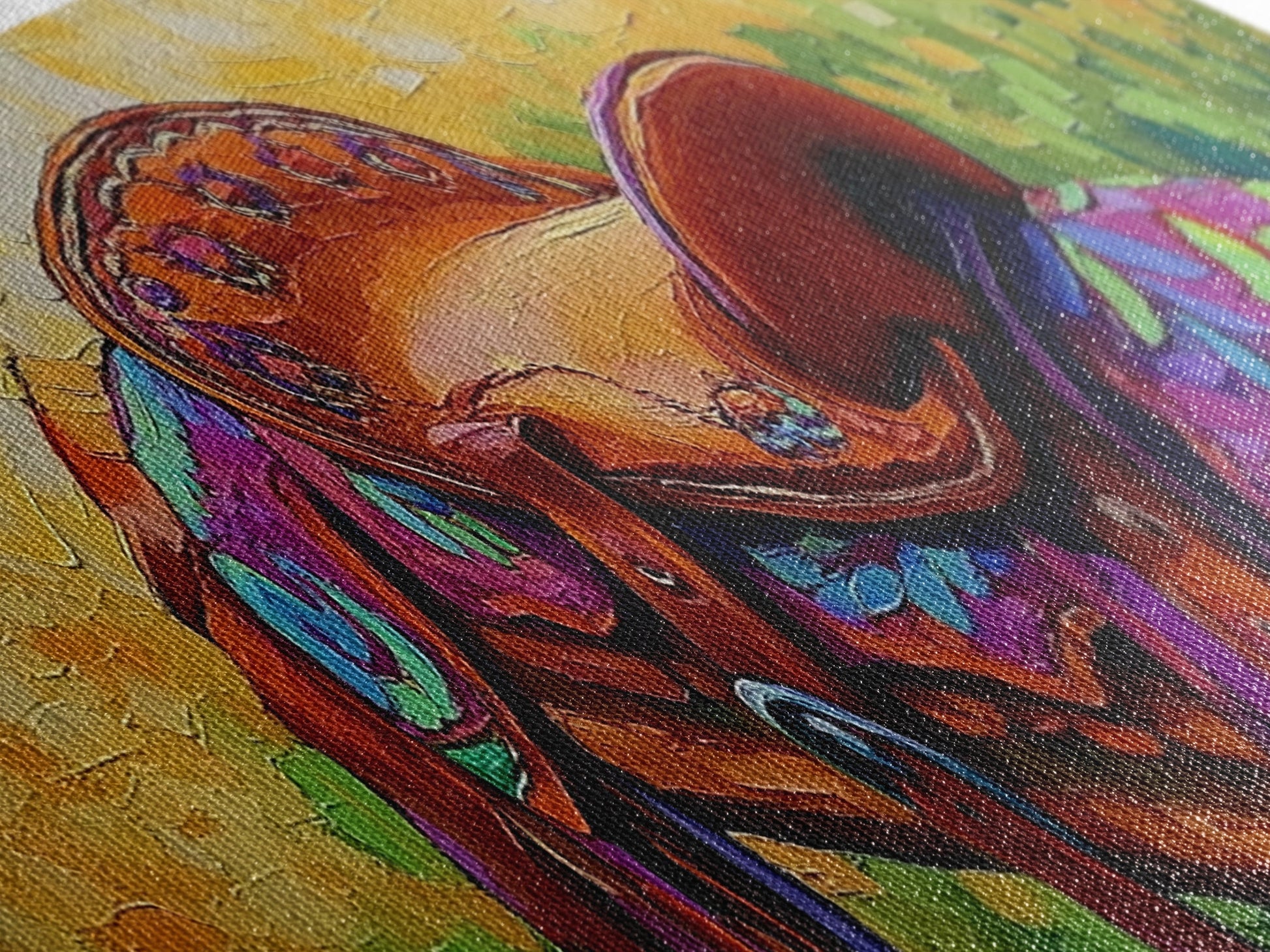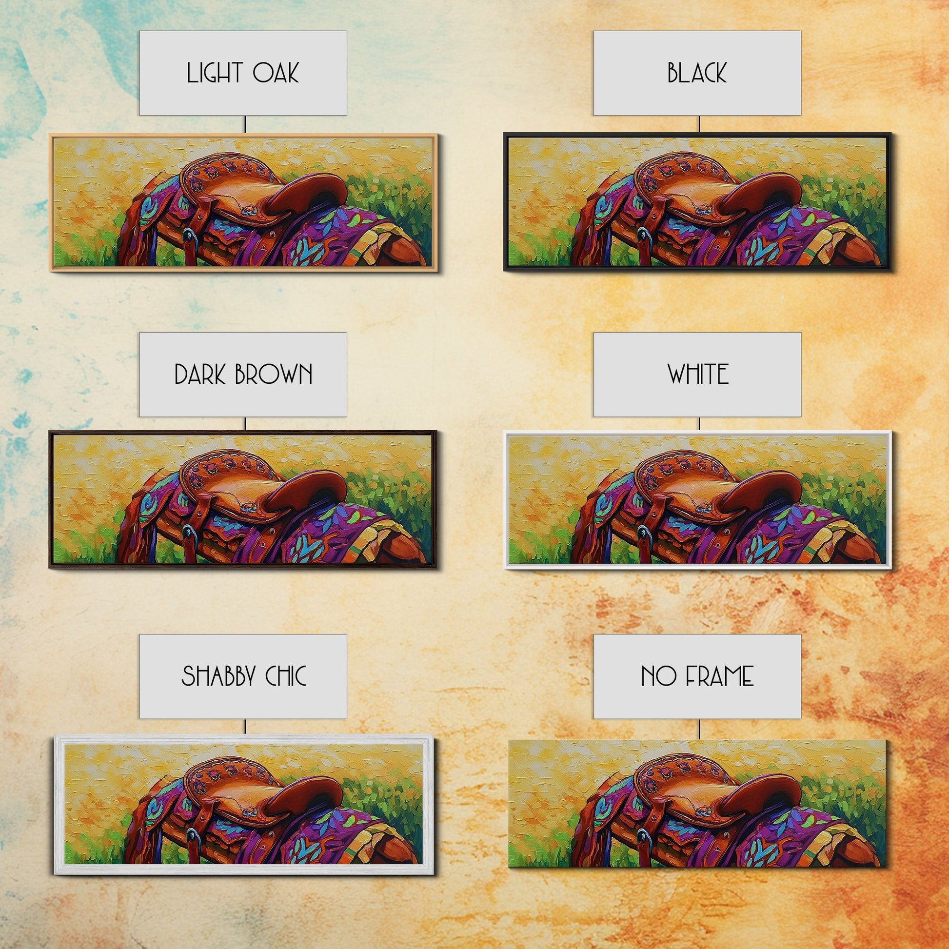 Colorful Saddle Painting, cowboy decor, vibrant rustic wall art, western style art, boho art, southwestern wall art, framed canvas print