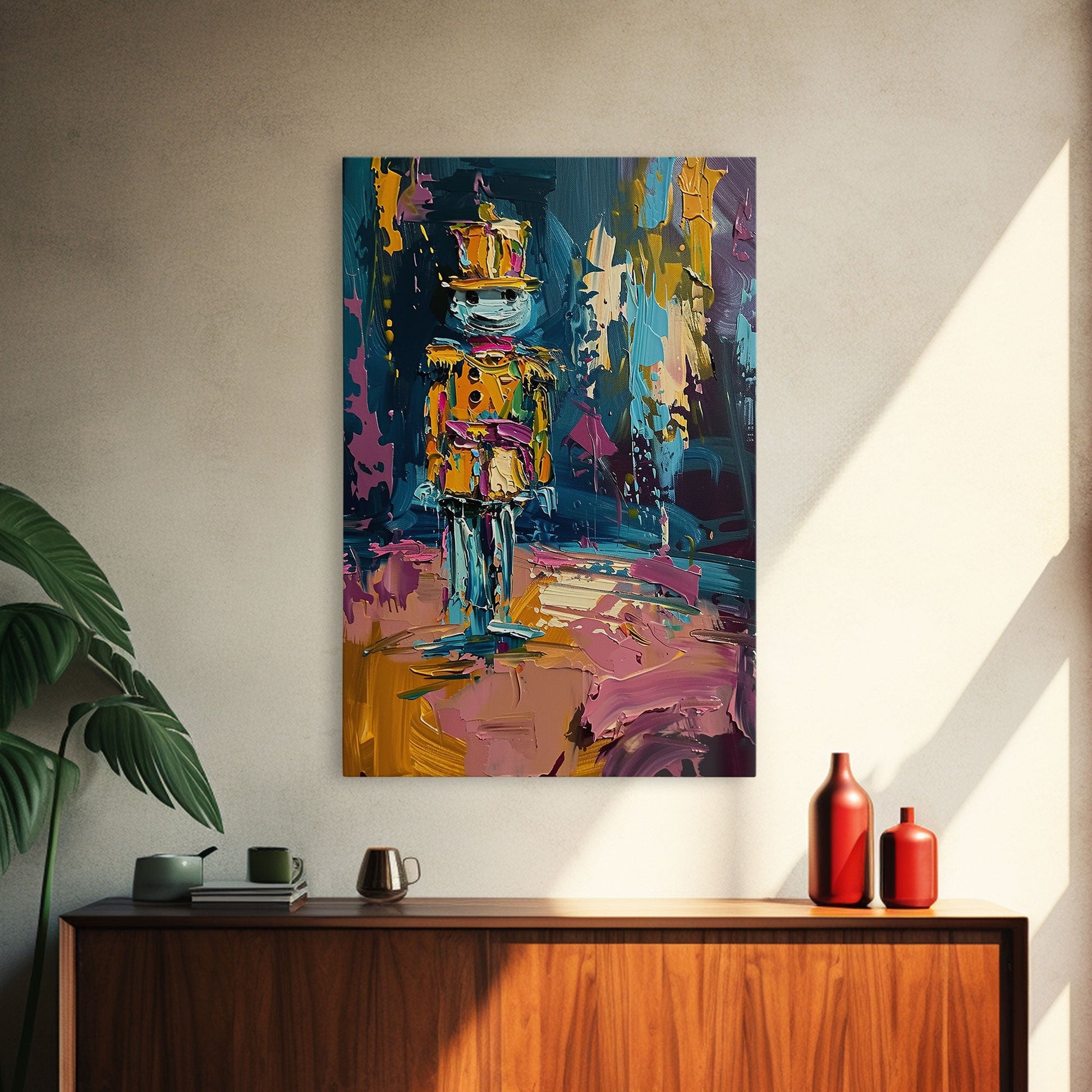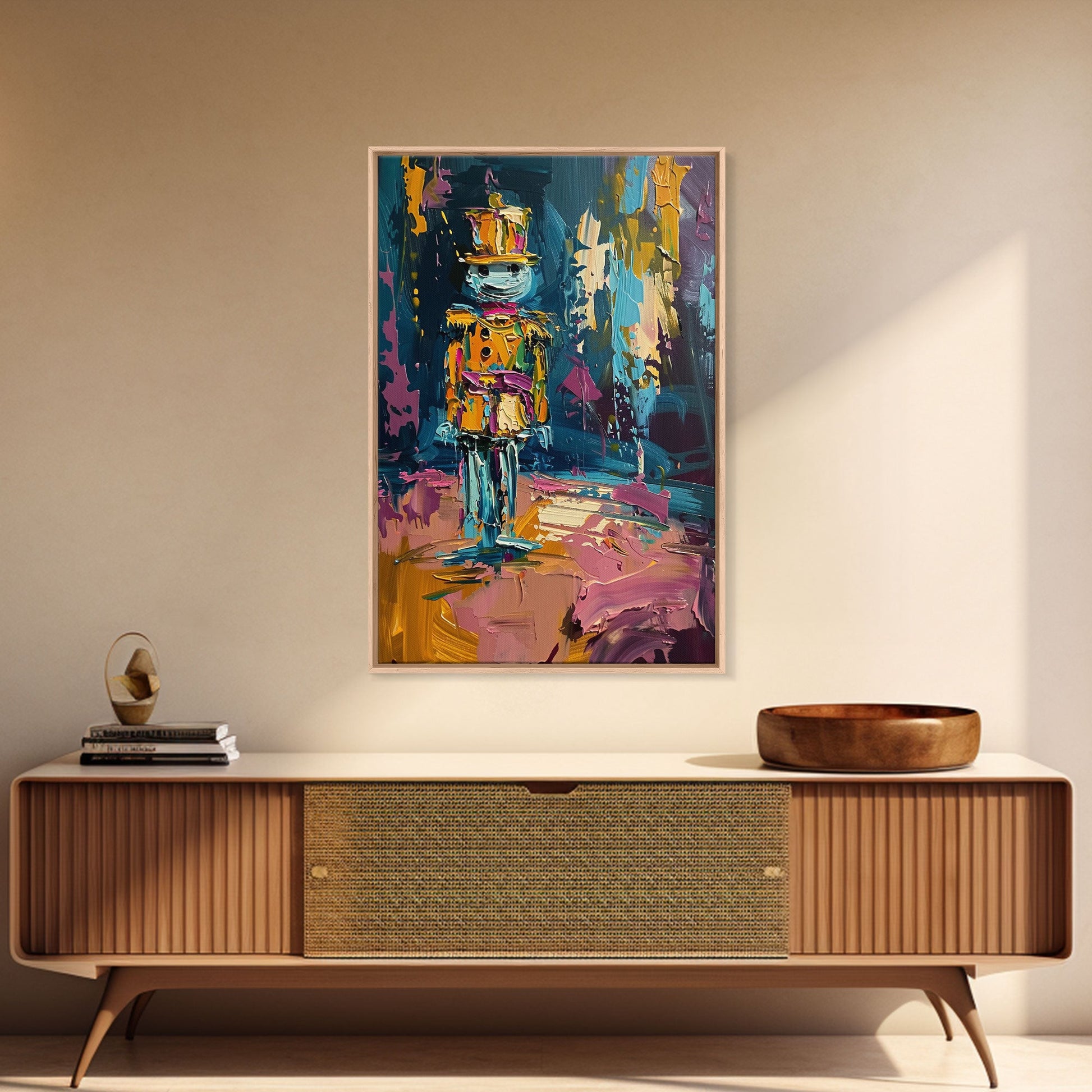 Colorful Skeleton Nutcracker Framed Canvas Print, Halloween Nutcracker Decor, Spooky Toy Art, Skeleton Wall Art, Haunted Nutcracker Print