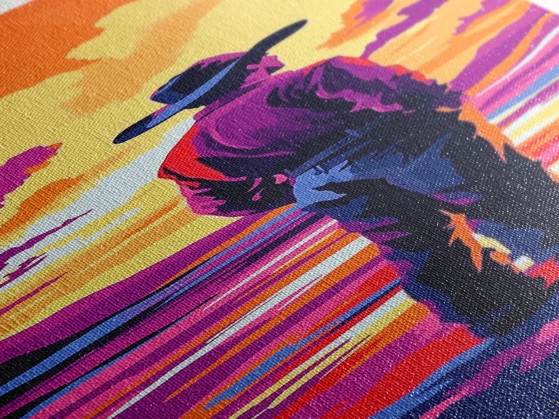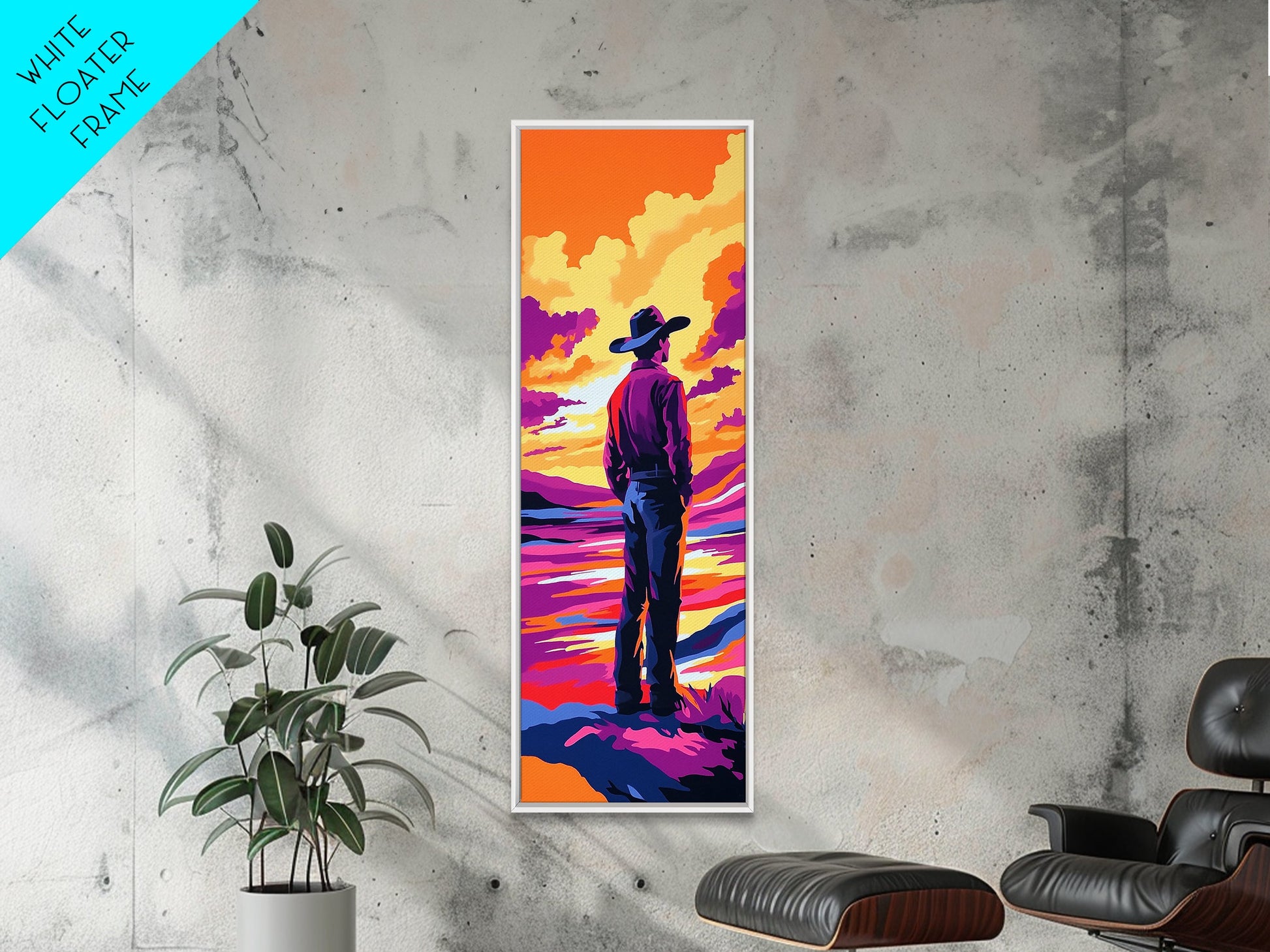 Colorful Sunset Cowboy Art Framed Canvas Print, Southwest Wall Art, Moody Art, Whimsical Art, Pink Orange Wall Art, Tall Narrow Art