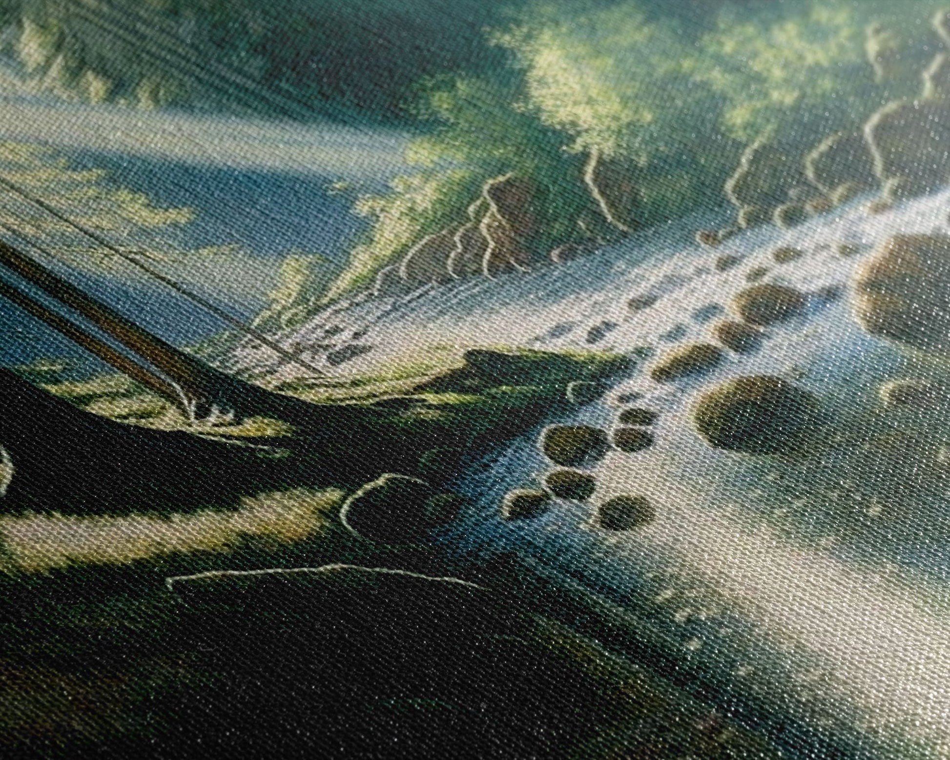 Most of our canvases are made in the USA, with the exception of canvases ordered with the light oak unstained frames, and any large canvases (24x48, 30x60, 16x48 and 20x60) ordered WITH a frame. These are temporarily made in and shipped from Europe, while we try to find a more consistent supplier in the USA.