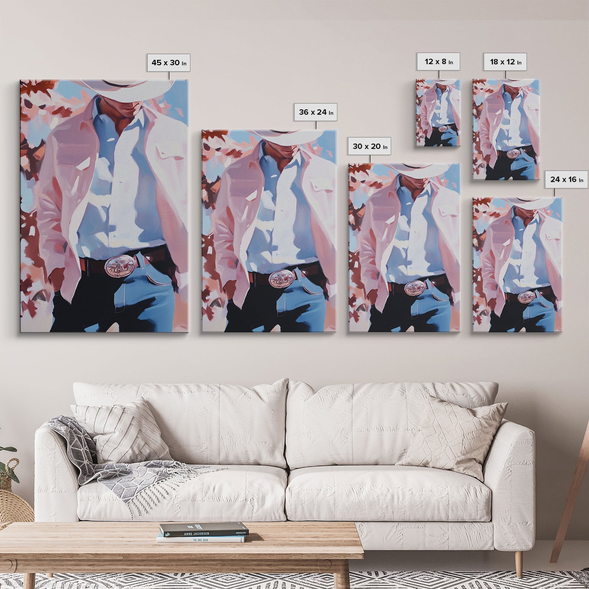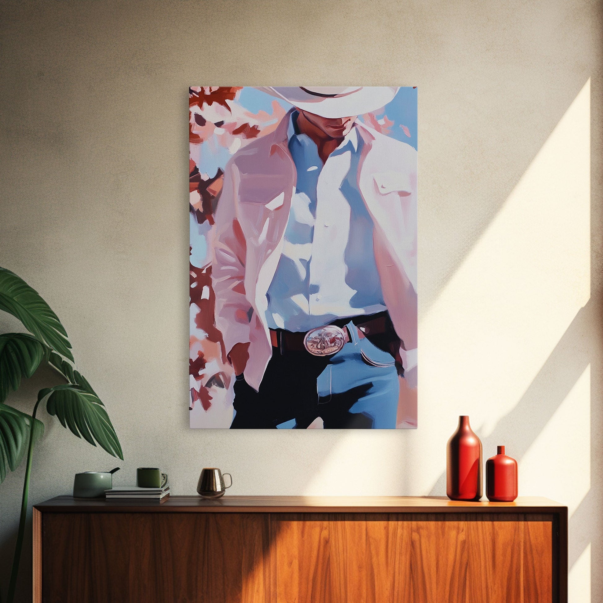 Cowboy Christmas Art Framed Canvas Print, Minimalist Holiday Decor Perfect Seasonal Gift Idea Wall Art 2024