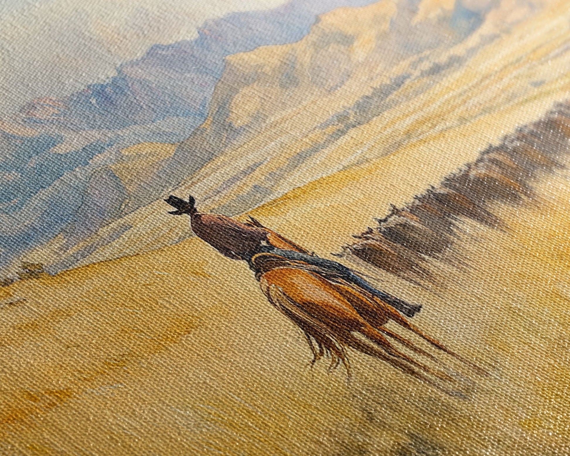 Most of our canvases are made in the USA, with the exception of canvases ordered with the light oak unstained frames, and any large canvases (24x48, 30x60, 16x48 and 20x60) ordered WITH a frame. These are temporarily made in and shipped from Europe, while we try to find a more consistent supplier in the USA.
