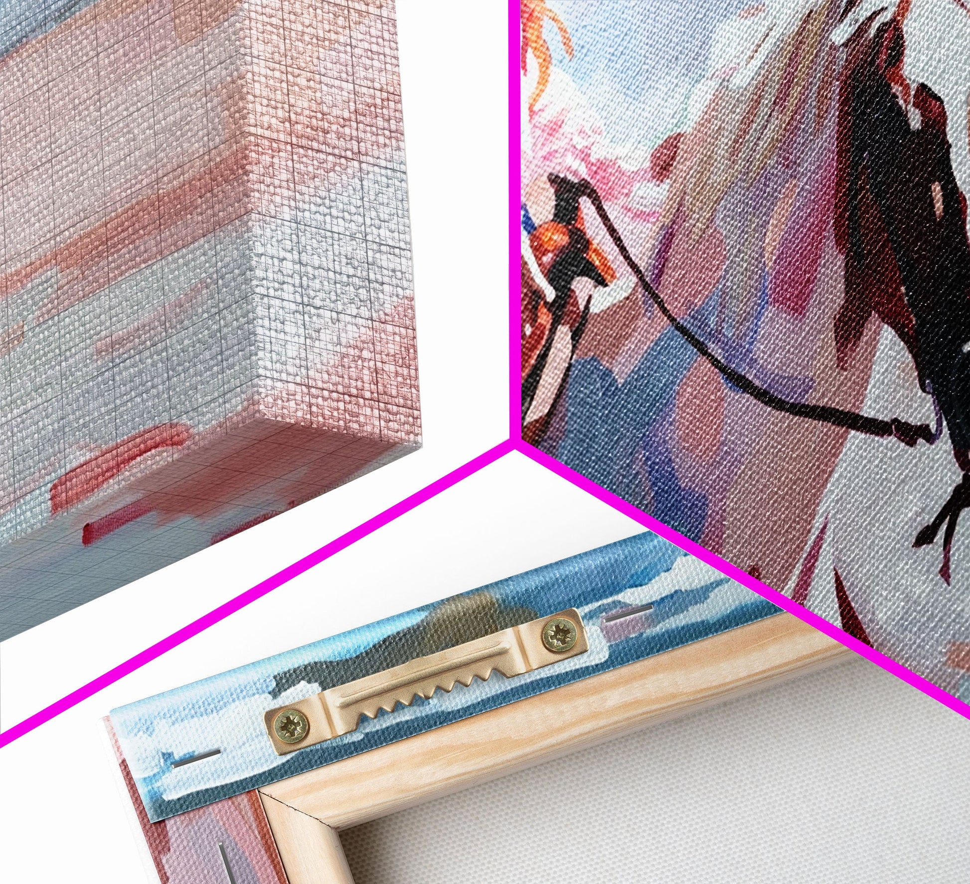 Cowgirl in Pink Shirt Riding Horse by the Sea, Beautiful Framed Canvas Print, Coastal Living Room Art, Beach Bedroom Decor, Horse Art