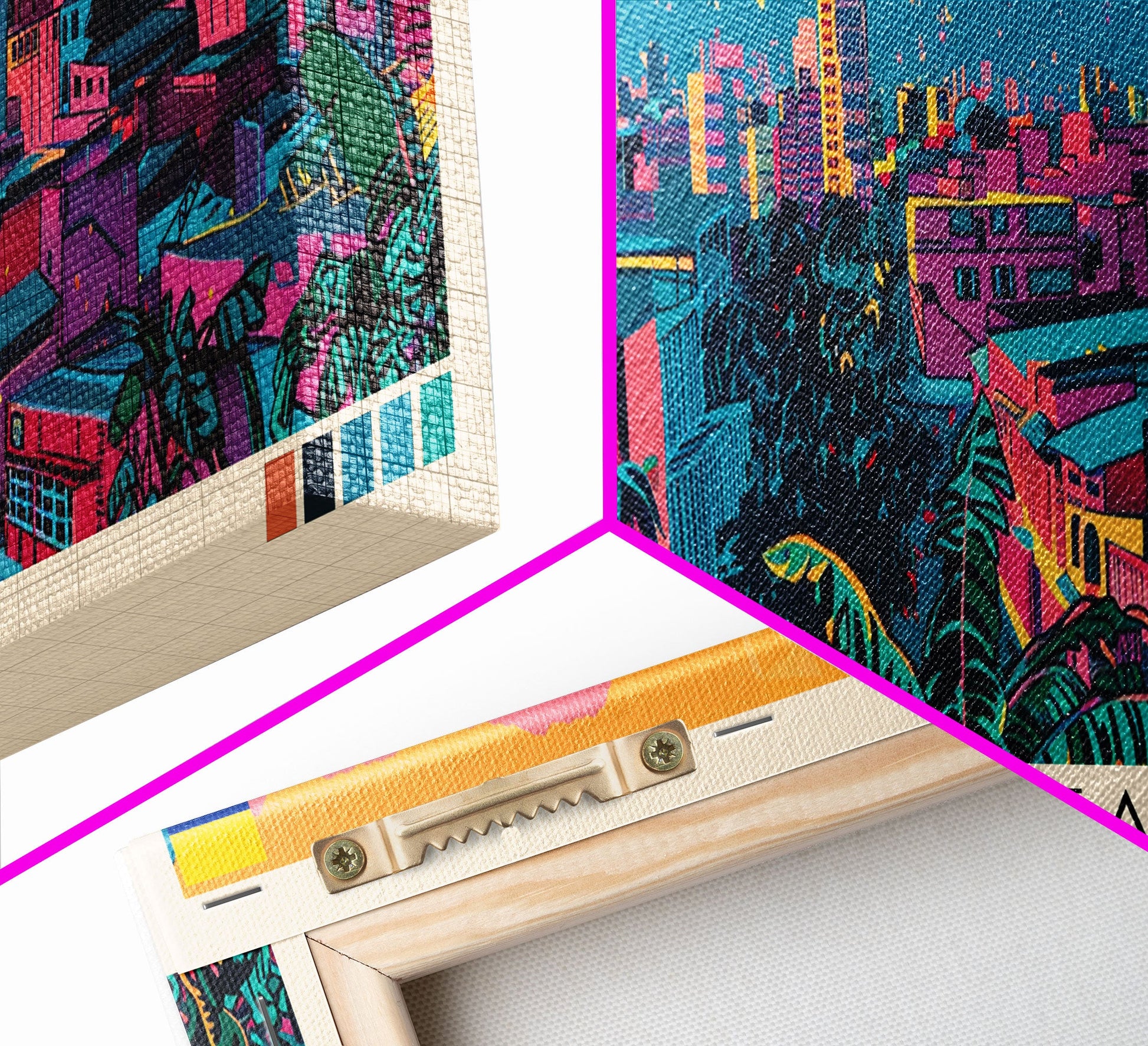 Hello and thank you for taking the time to view our modern high quality giclée artwork! We offer both posters and stretched canvas prints. Our posters are printed on Ultra Matte 60 lb / 230 GSM high quality photo paper, with a thickness of 10 mil. Our canvases are printed on museum grade 350 GSM canvas material with ECO friendly archival grade ink, then hand stretched and stapled over premium, FSC certified and shrink resistant frames. Designed and built to last a lifetime.