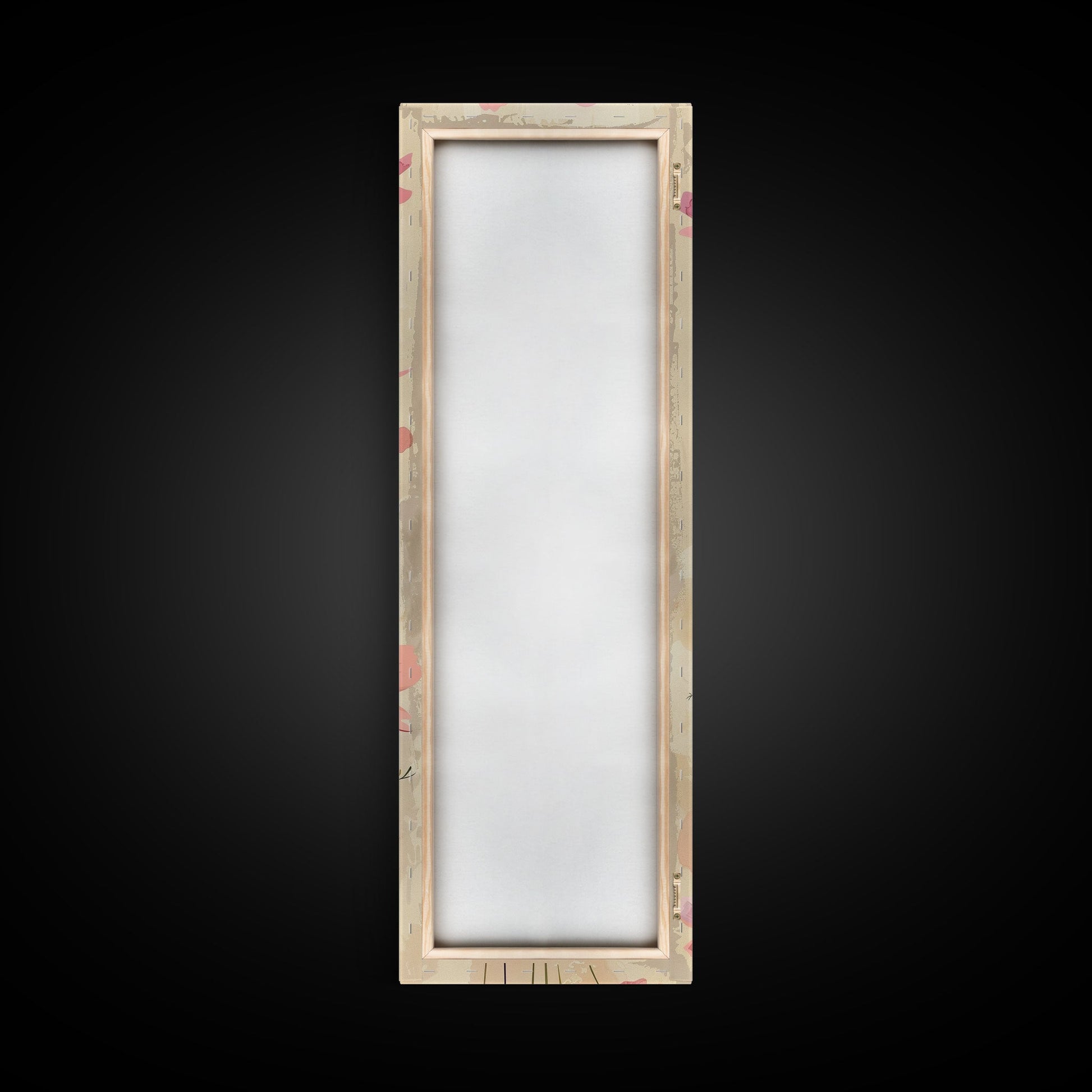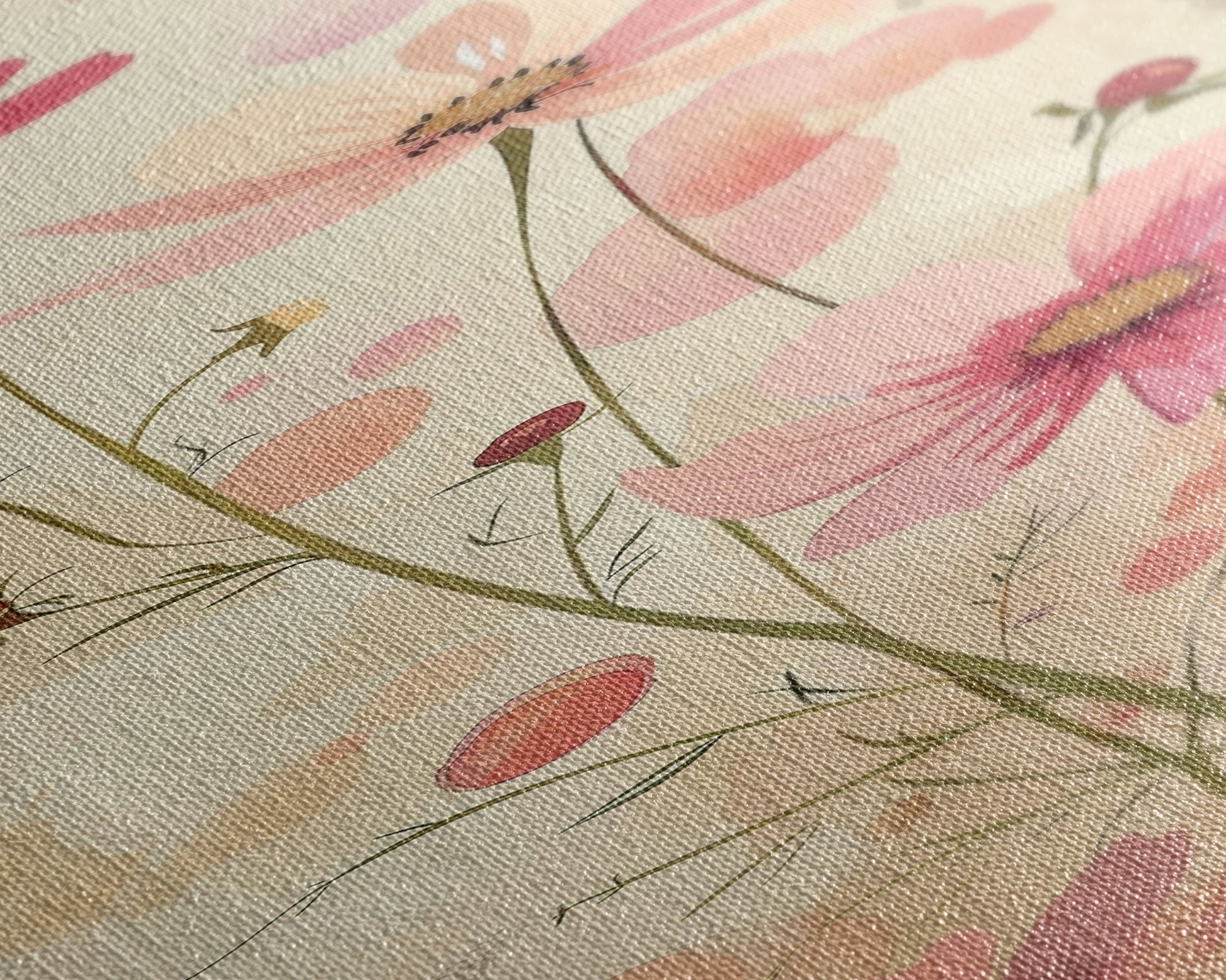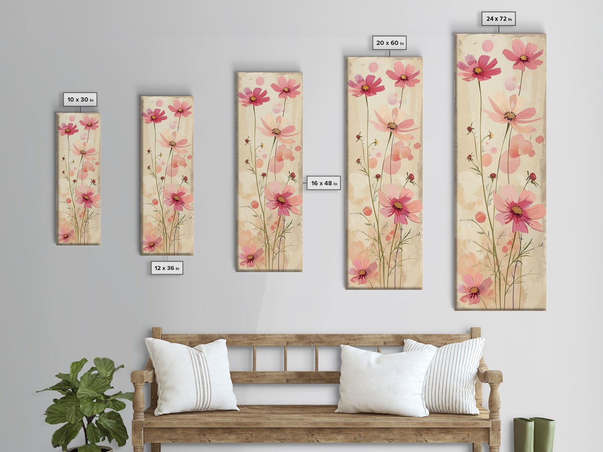 Delicate Pink Flowers with Tall Stems on a Subtle Beige Background Ukiyo-e Art Japanese Framed Canvas Print Skinny Tall Art