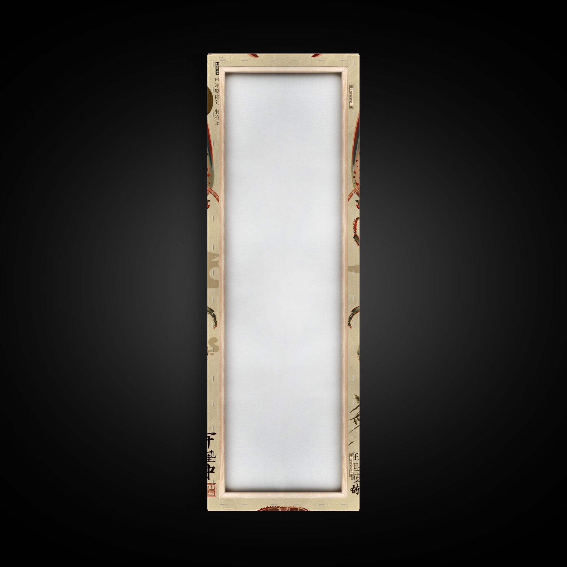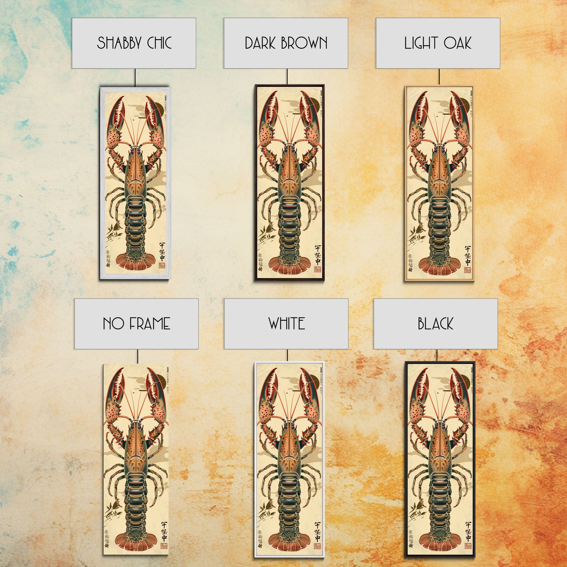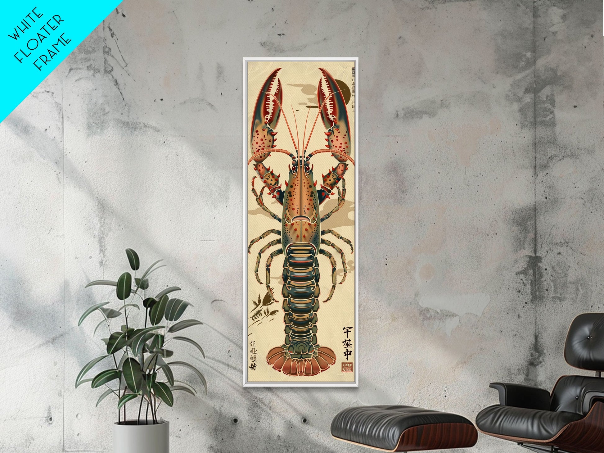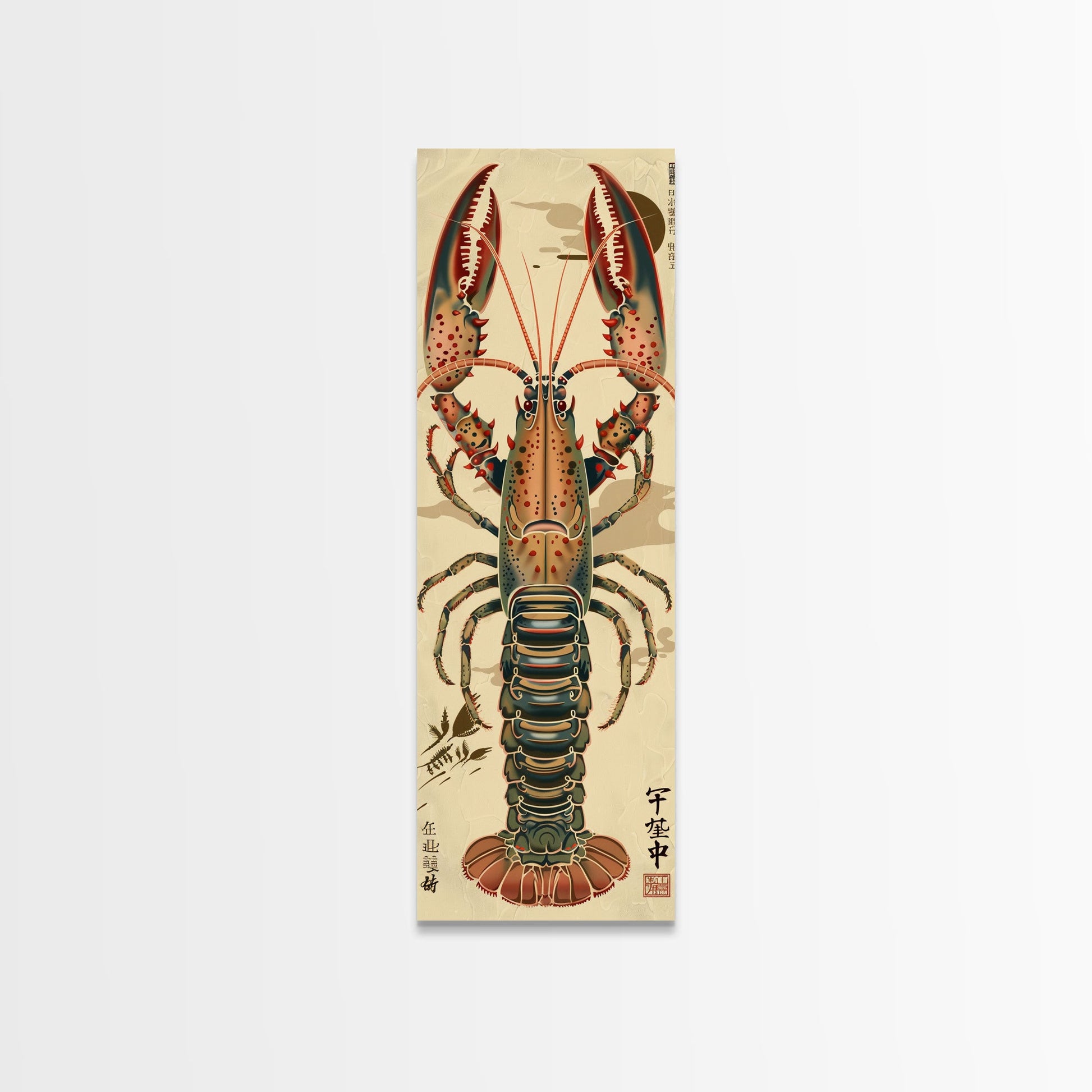 Detailed Lobster Illustration On Beige Background Skinny Art Wood Block Print Japanese Style Art Framed Canvas Print Tall Art Ukiyo-e Art