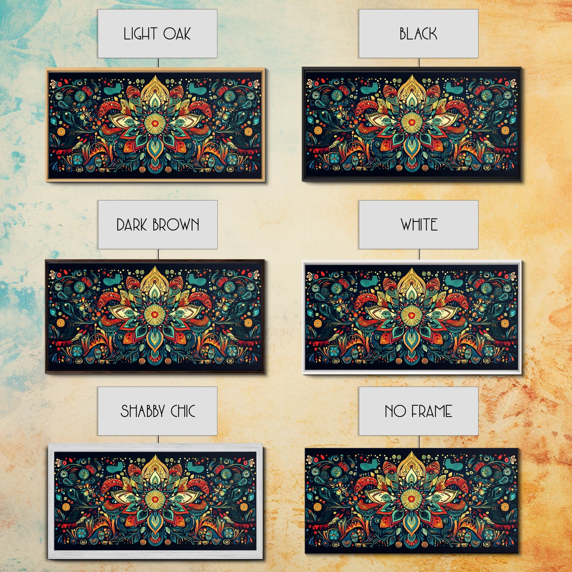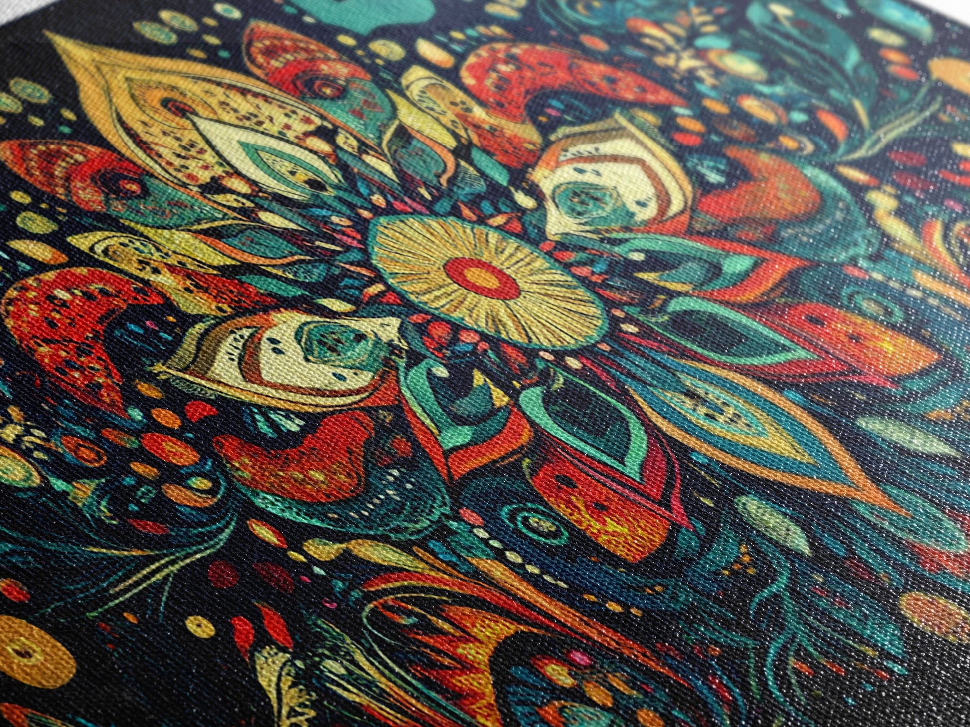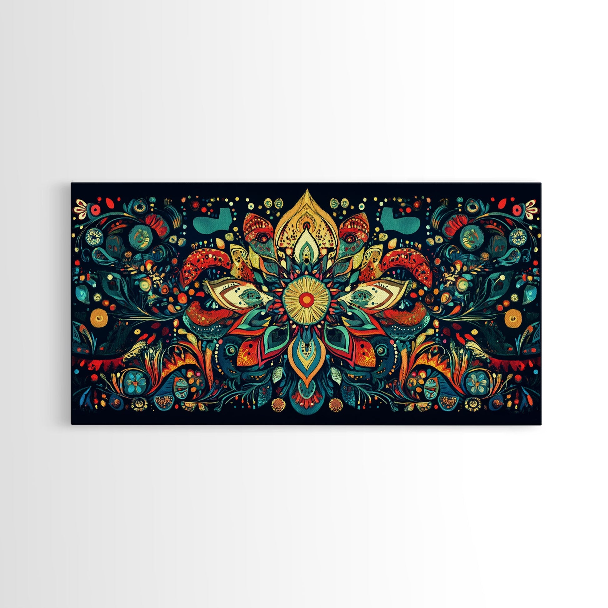 Elaborate Mandala Framed Canvas Print, Vibrant Boho Art, Spiritual Zen Wall Art, Geometric Ethereal Painting, Colorful Sacred Geometry