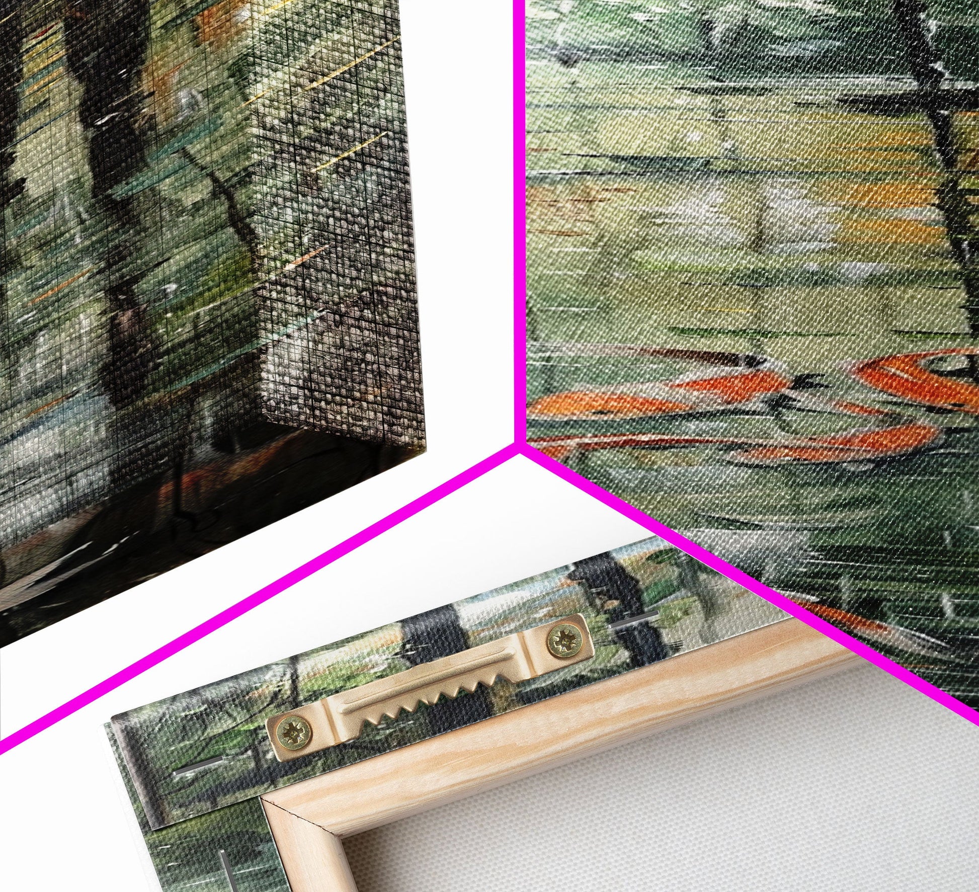 Elegant Koi Fish Swimming Serene Water Garden Nature Art Framed Canvas Print Tall Art Japanese Style Art
