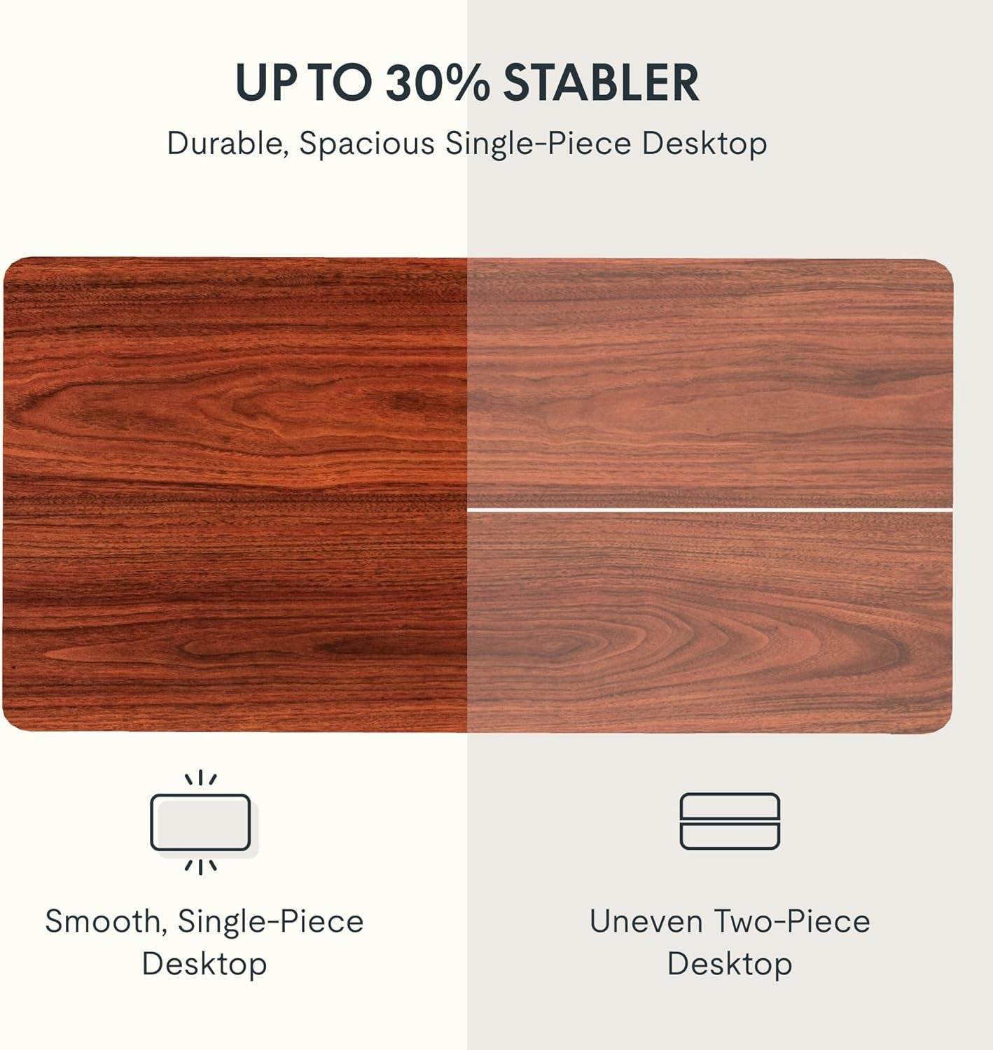 ● AMPLE WHOLE-PIECE DESKTOP: With its whole-piece 1” eco-friendly desktop, this standing desk provides plenty of room for your computer setup, documents, and accessories, creating a well-organized and productive work environment. Due to hand measurements, desktop dimensions may vary slightly by 0 to 1”.