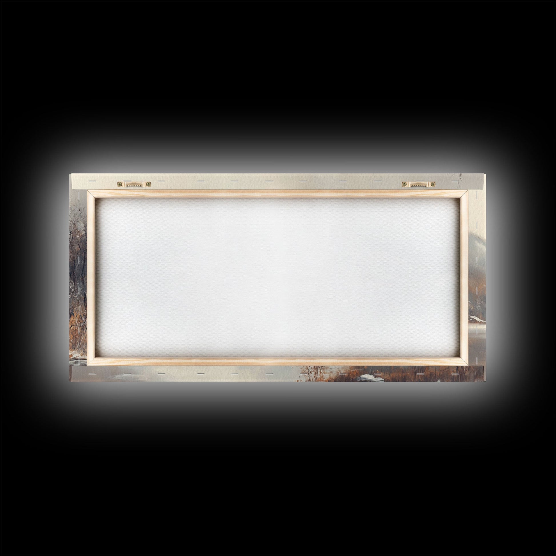 Fall On The River, Framed Canvas Print, Beautiful Watercolor Painting Of an Autumn Landscape, Ready To Hang Seasonal Decor