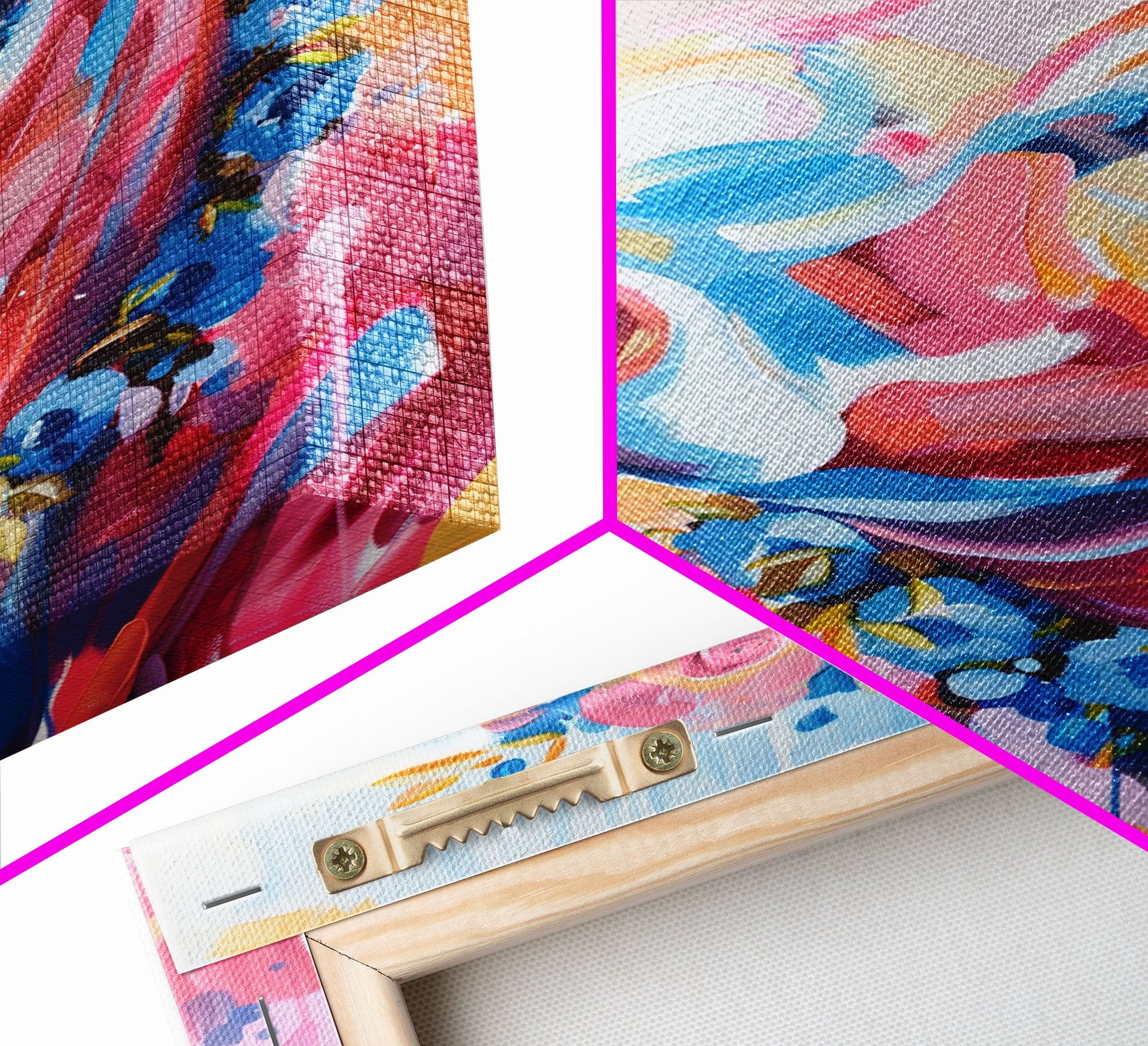 Hello and thank you for taking the time to view our modern high quality giclée artwork! We offer both posters and stretched canvas prints. Our posters are printed on Ultra Matte 60 lb / 230 GSM high quality photo paper, with a thickness of 10 mil. Our canvases are printed on museum grade 350 GSM canvas material with ECO friendly archival grade ink, then hand stretched and stapled over premium, FSC certified and shrink resistant frames. Designed and built to last a lifetime.