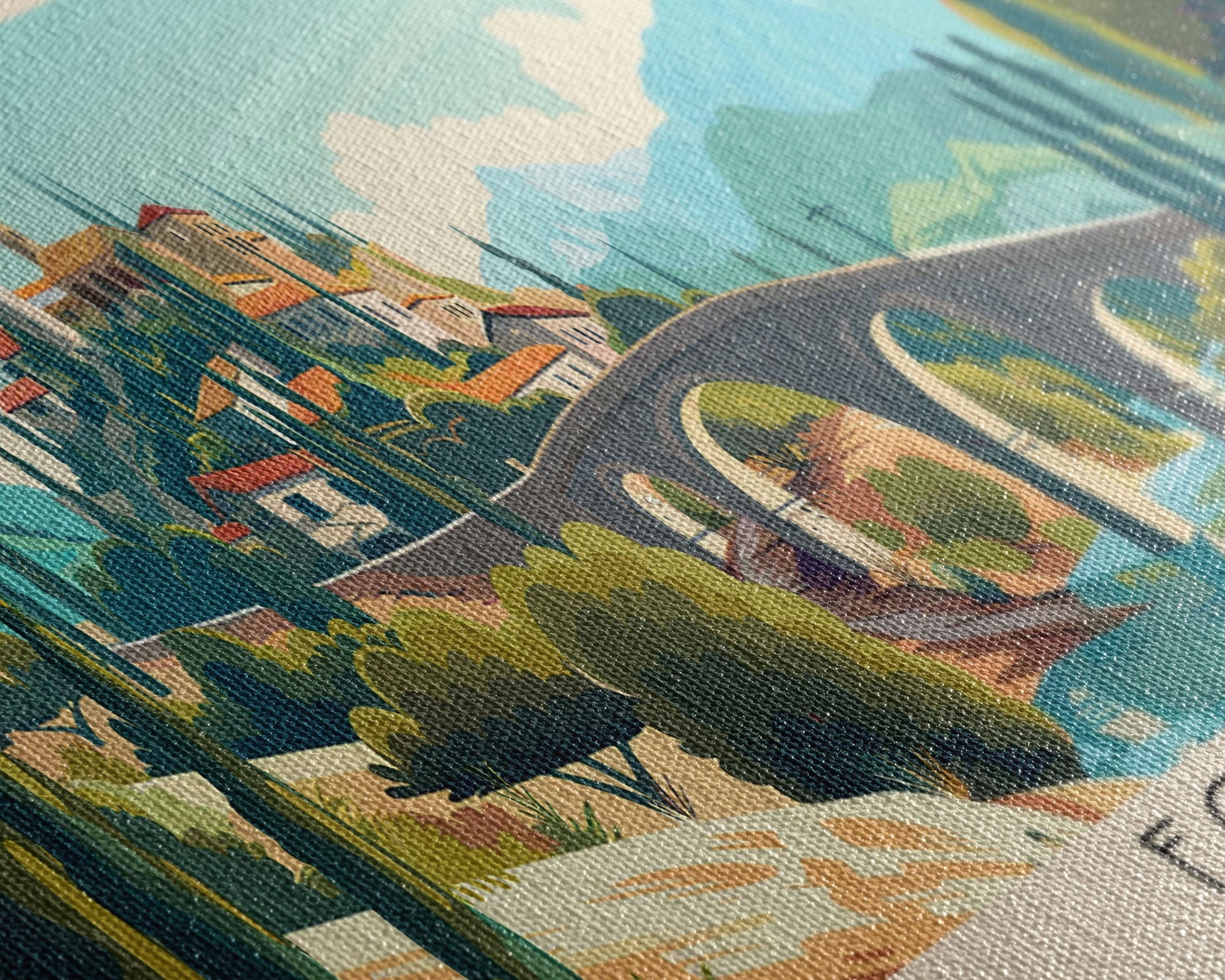 Most of our canvases are made in the USA, with the exception of canvases ordered with the light oak unstained frames, and any large canvases (24x48, 30x60, 16x48 and 20x60) ordered WITH a frame. These are temporarily made in and shipped from Europe, while we try to find a more consistent supplier in the USA.