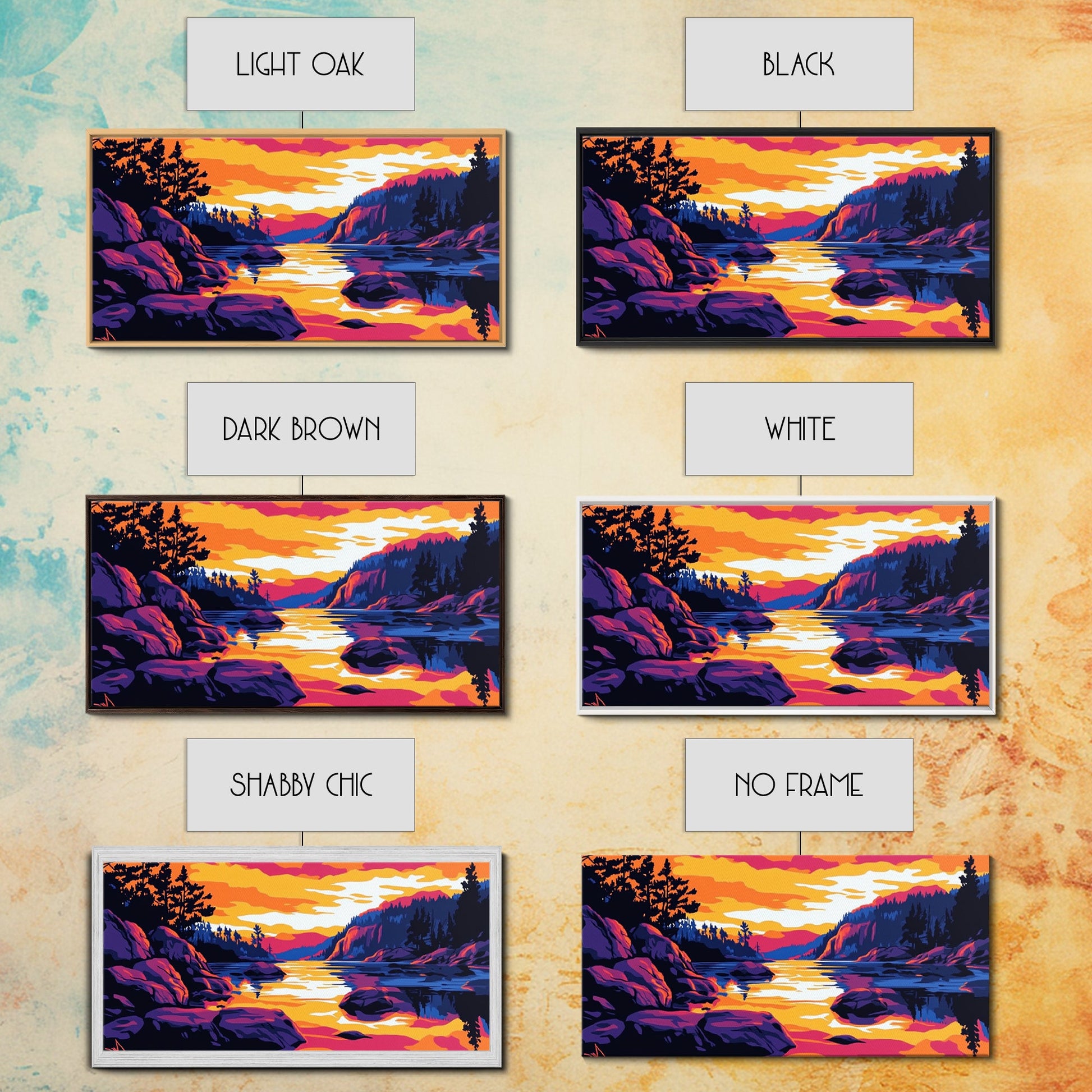 *Optional frames add a total of 1.5 inches to each dimension, for example a 10x20 canvas with a frame will be 11.5 by 21.5 inches total. All framed canvas are 1.5" total depth.