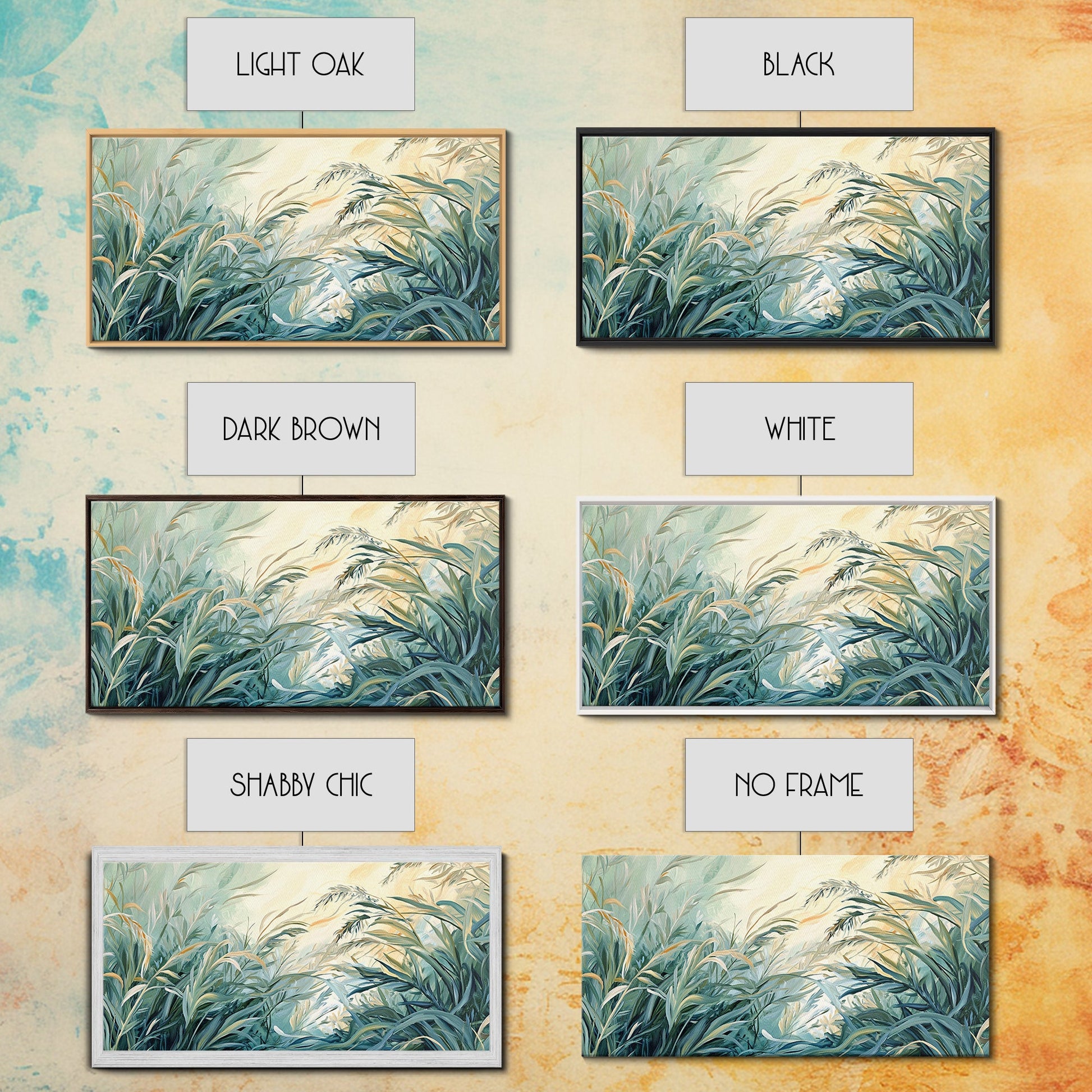 Green grass, warm light, Canvas Print, wabi sabi wall art, sage green wall art, botanical prints, extra wide art, minimalist art