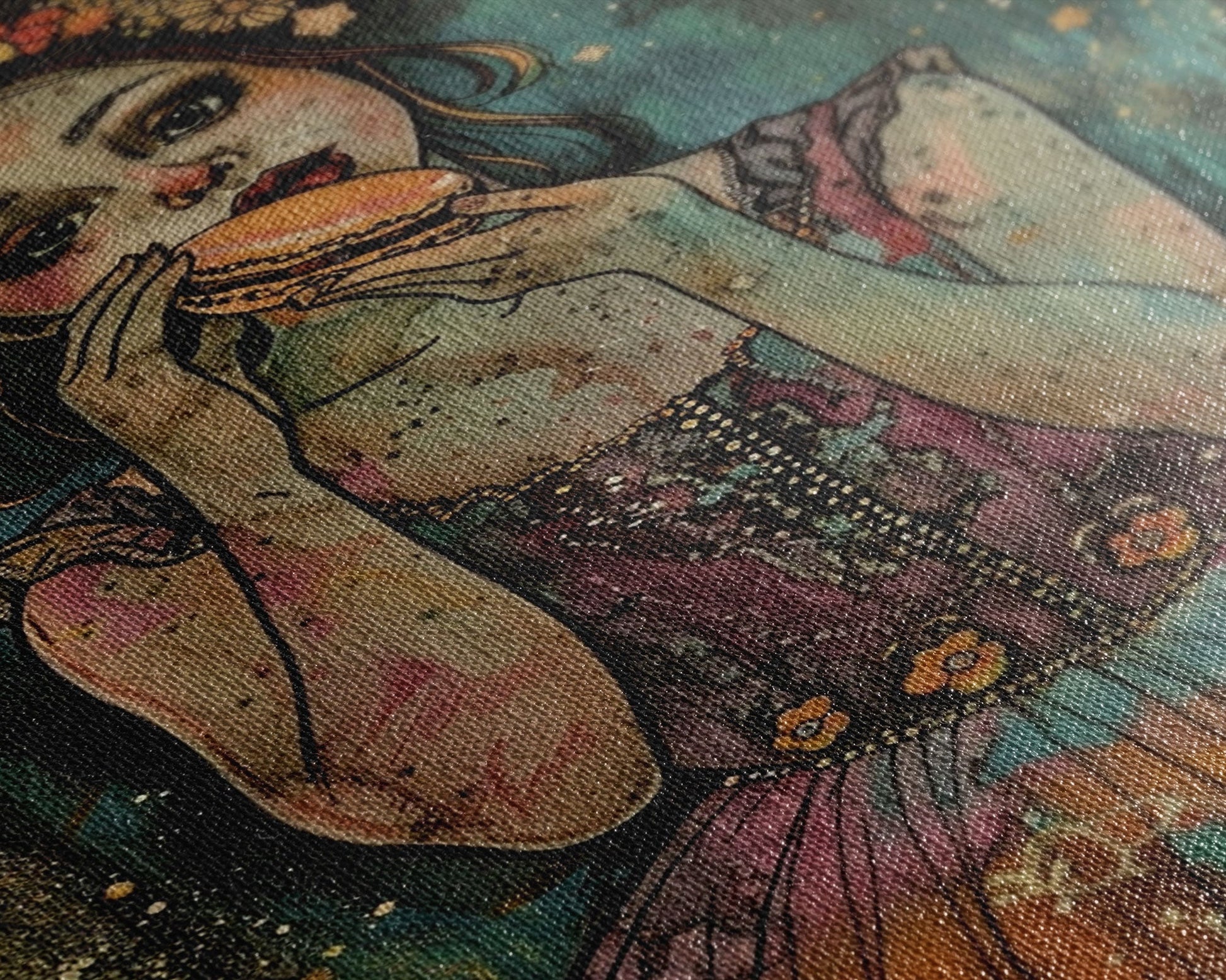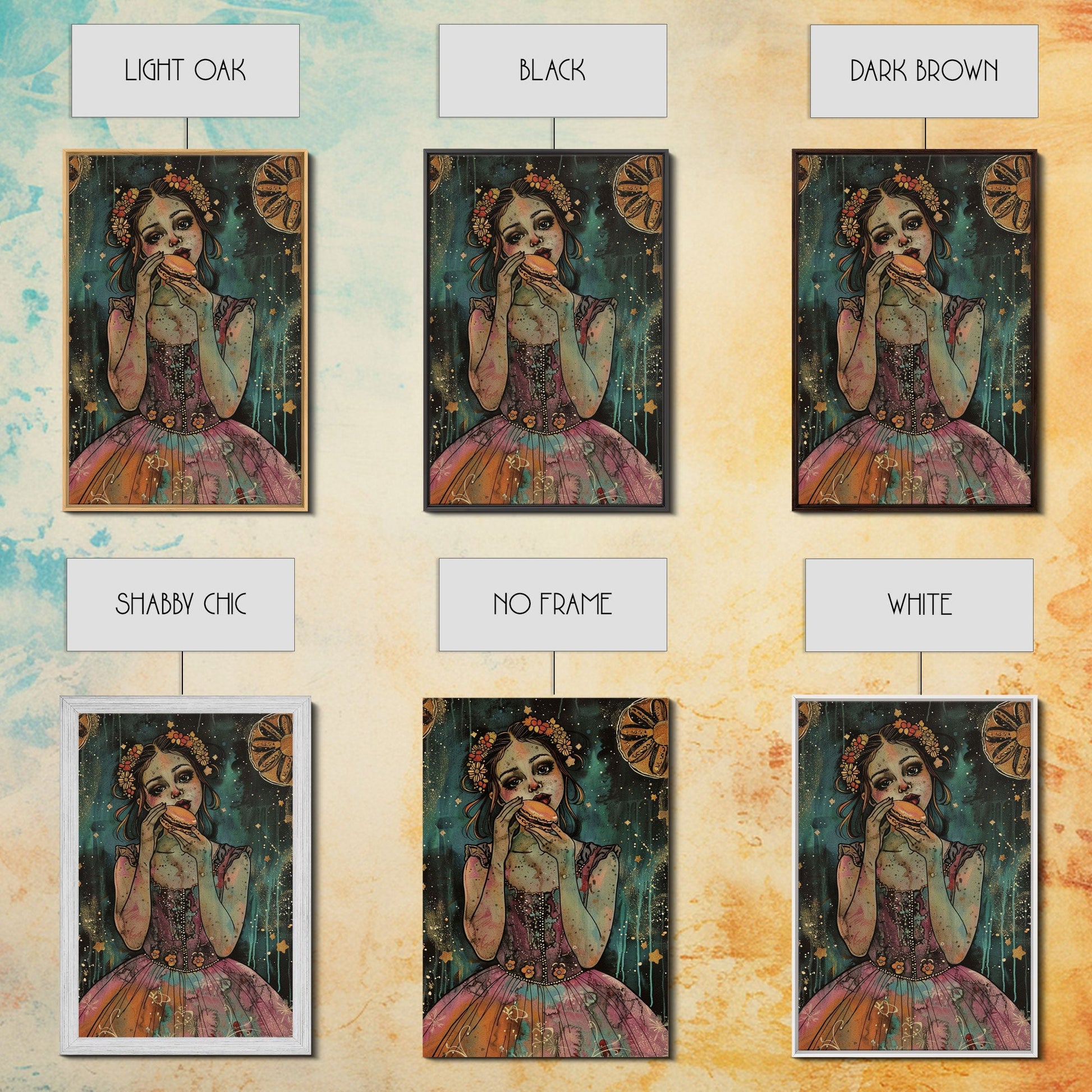 Halloween Girl Eating Macaron, Framed Canvas Print, Wall Art, Living Room Decor, Spooky, Girl Art, Original Painting, Home Decor
