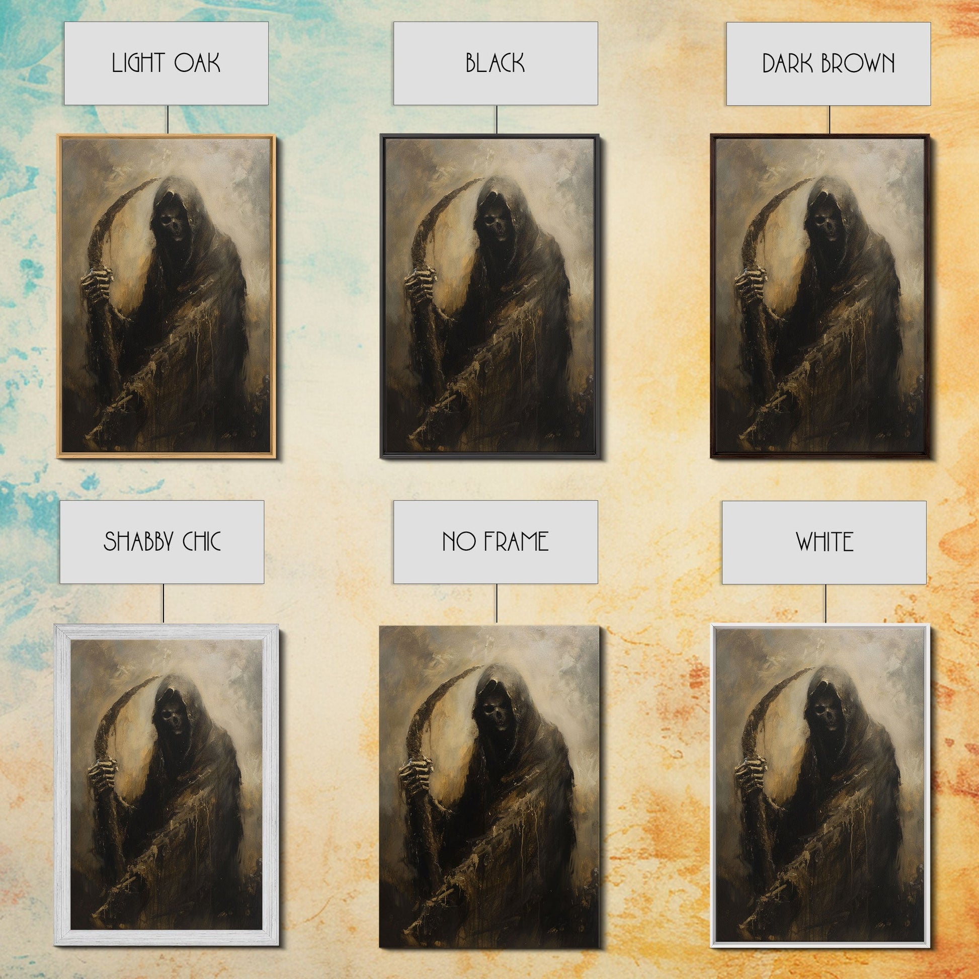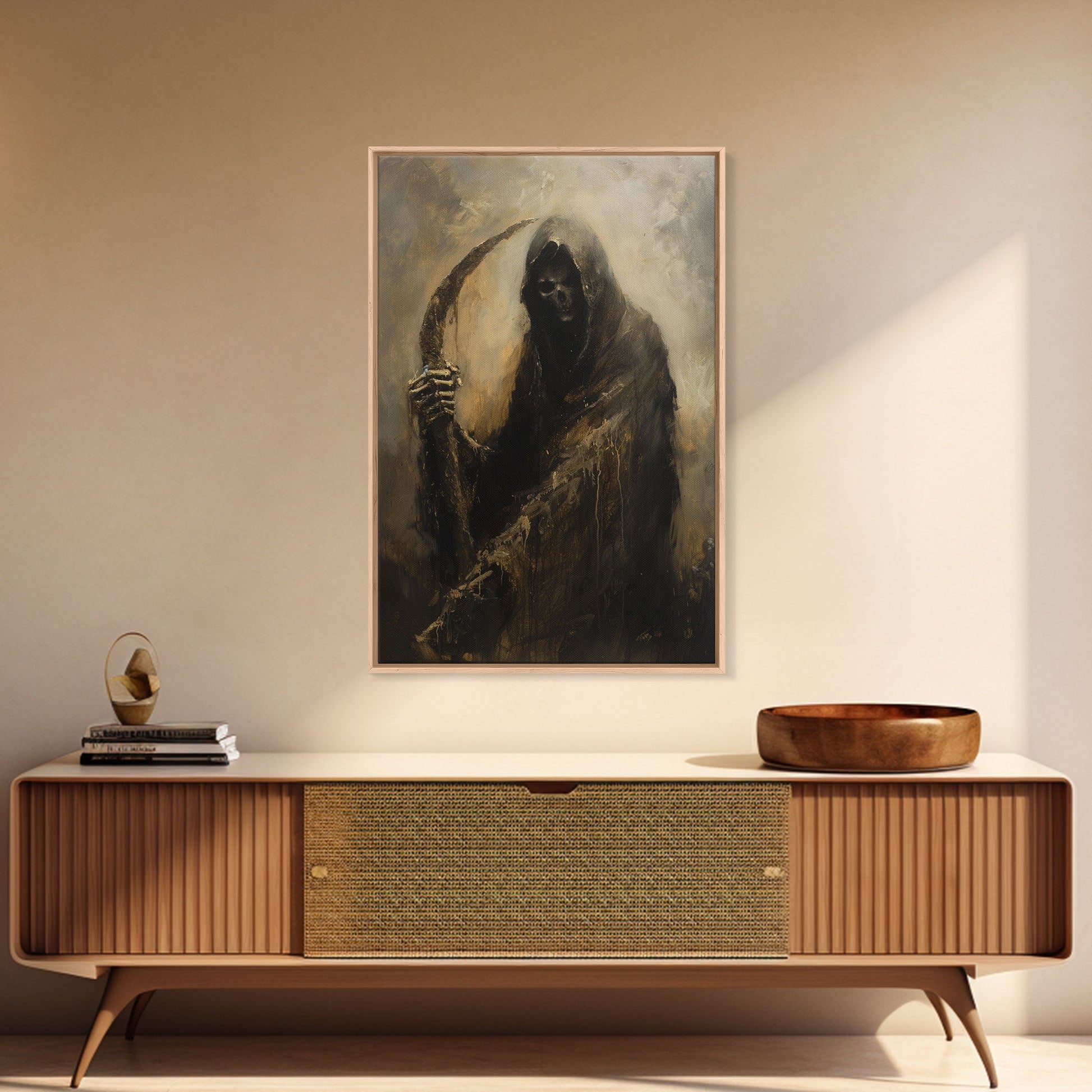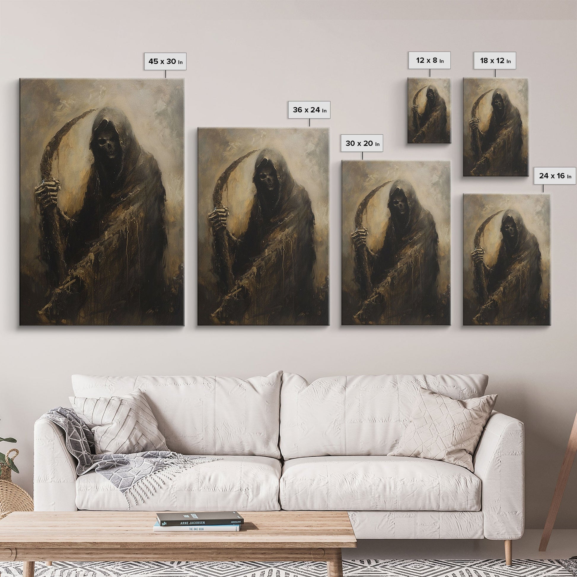 Haunting Grim Reaper with Scythe - Dark Halloween Nightmare Gothic Art Framed Canvas Print, Spooky Wall Decor