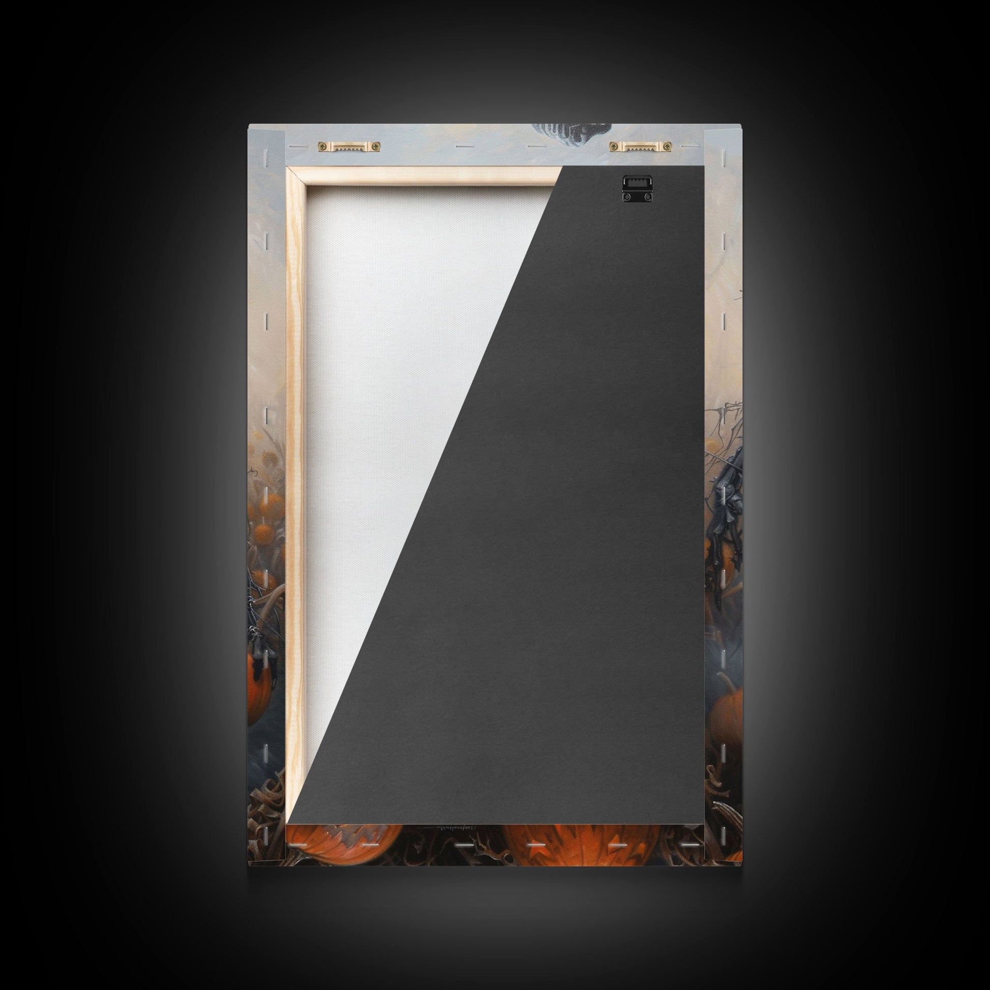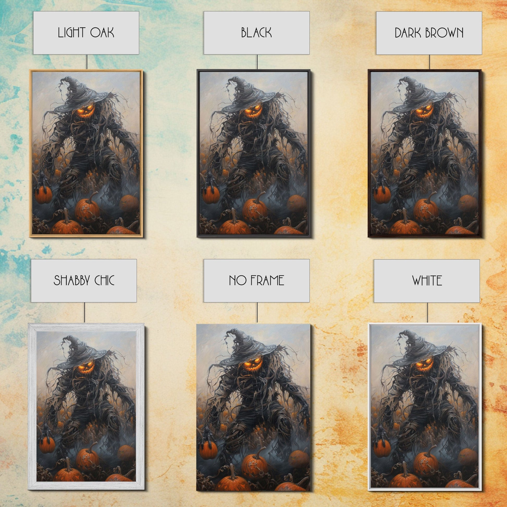 Haunting Scarecrow Holding Pumpkin in Misty Field | Halloween Wall Art | Spooky Home Decor | Creepy Scarecrow Painting | Framed Canvas Print