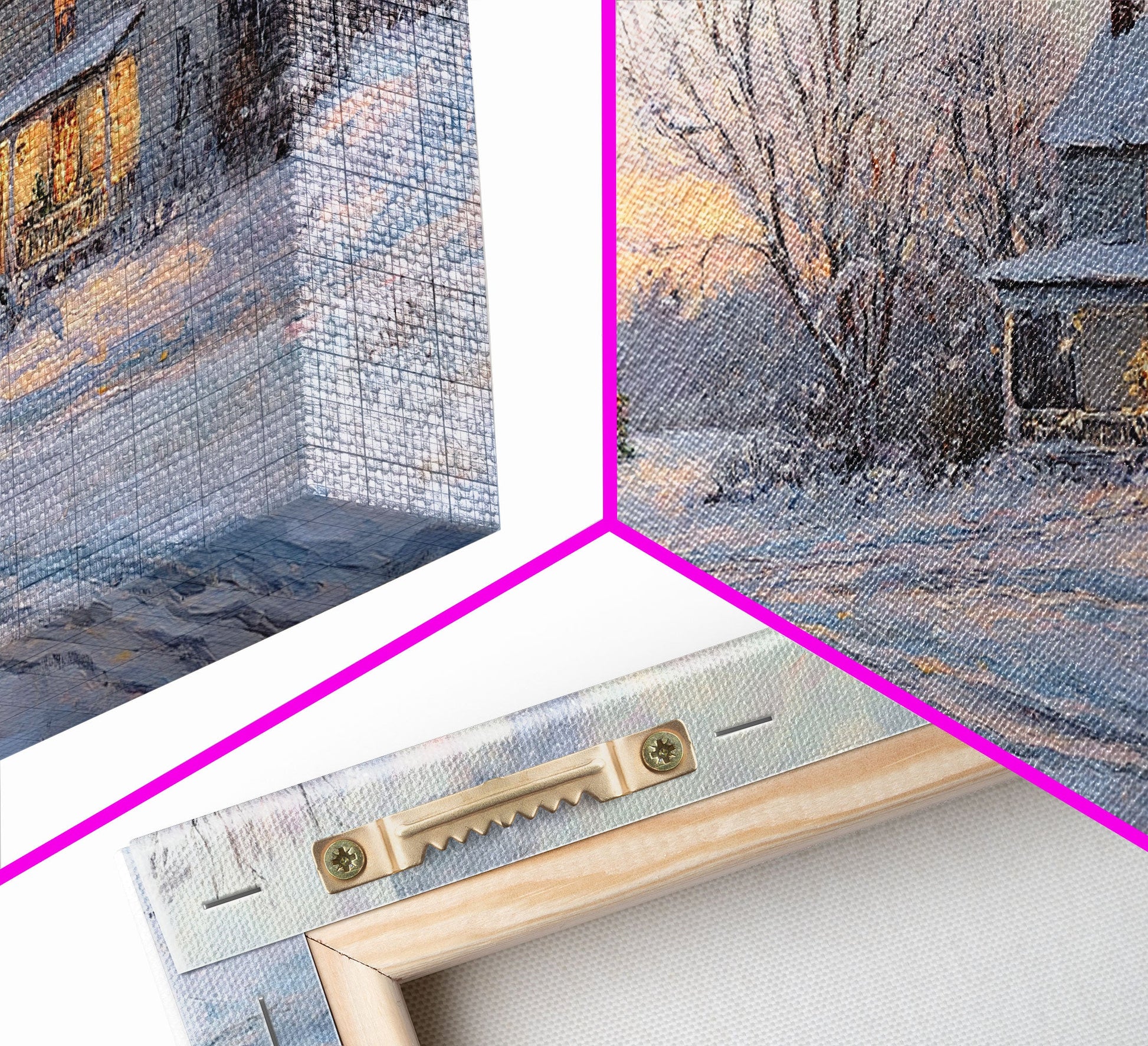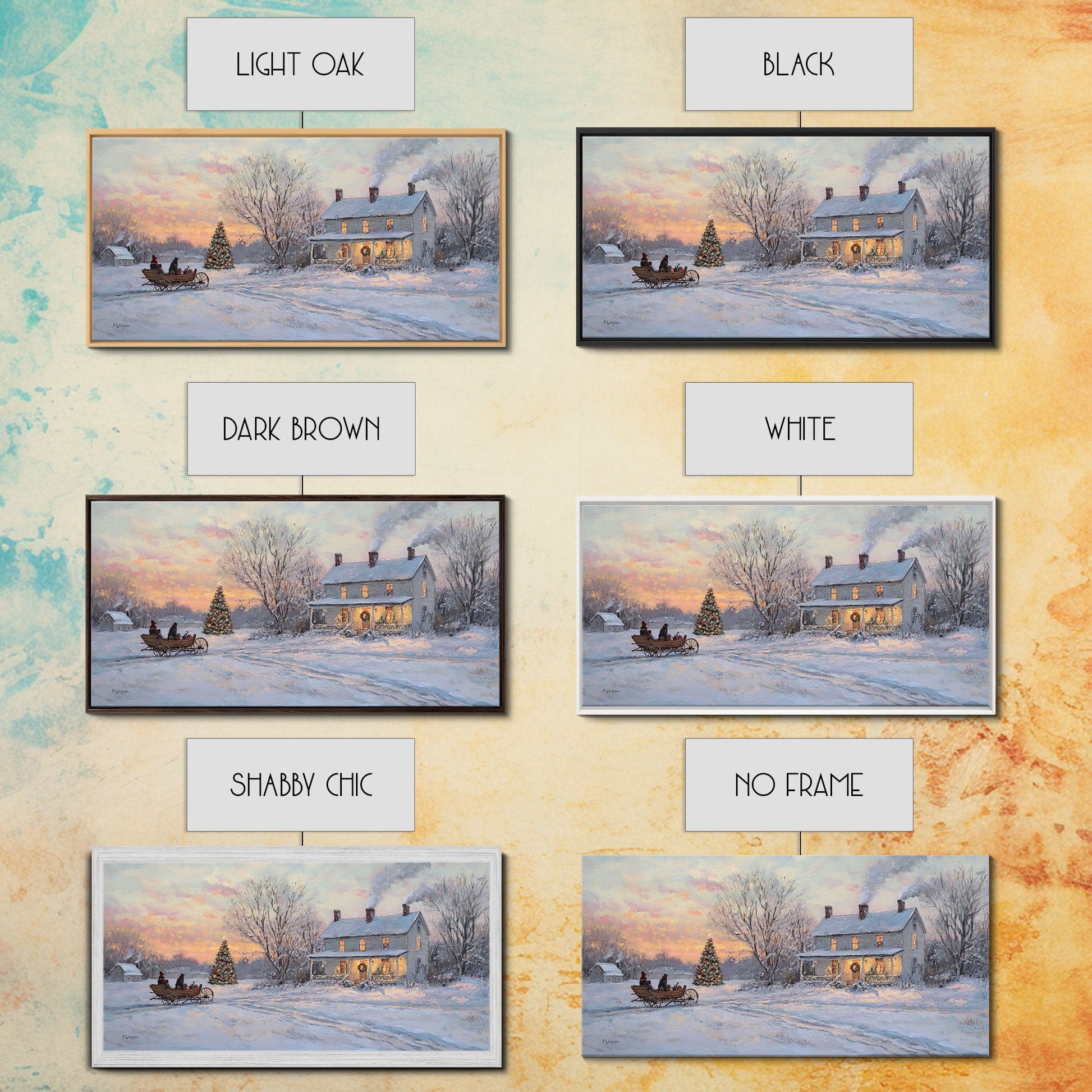 Horse Drawn Sleigh Ride Framed Canvas Print, Winter Wonderland Christmas Scene Art, Vintage Farmhouse Christmas Wall Art Gift Idea