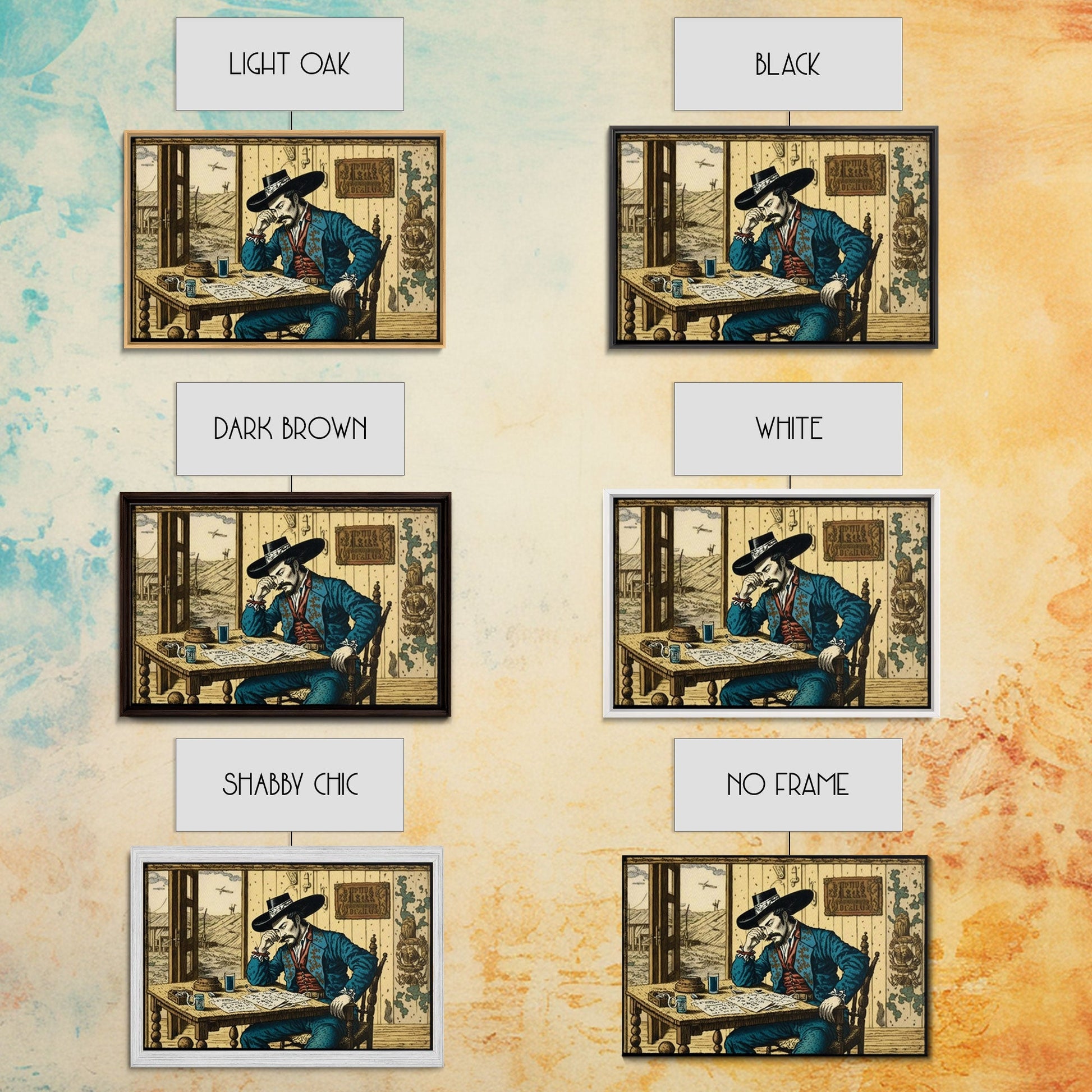 Japanese Cowboy, Wild West Samurai Mashup Art, Framed Canvas Print, Wild Western Decor, Home Art, Living Room Decor