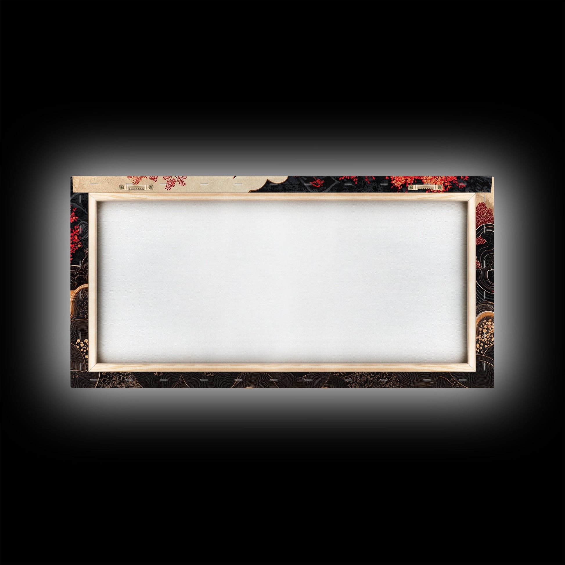 Japanese Inspired Framed Canvas Print Featuring Chinoiserie Wall Art and Autumn Tree Painting Unique Horizontal Living Room Art