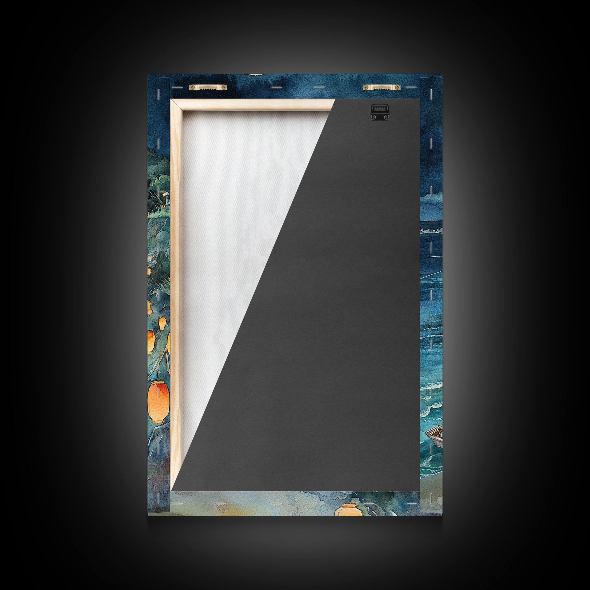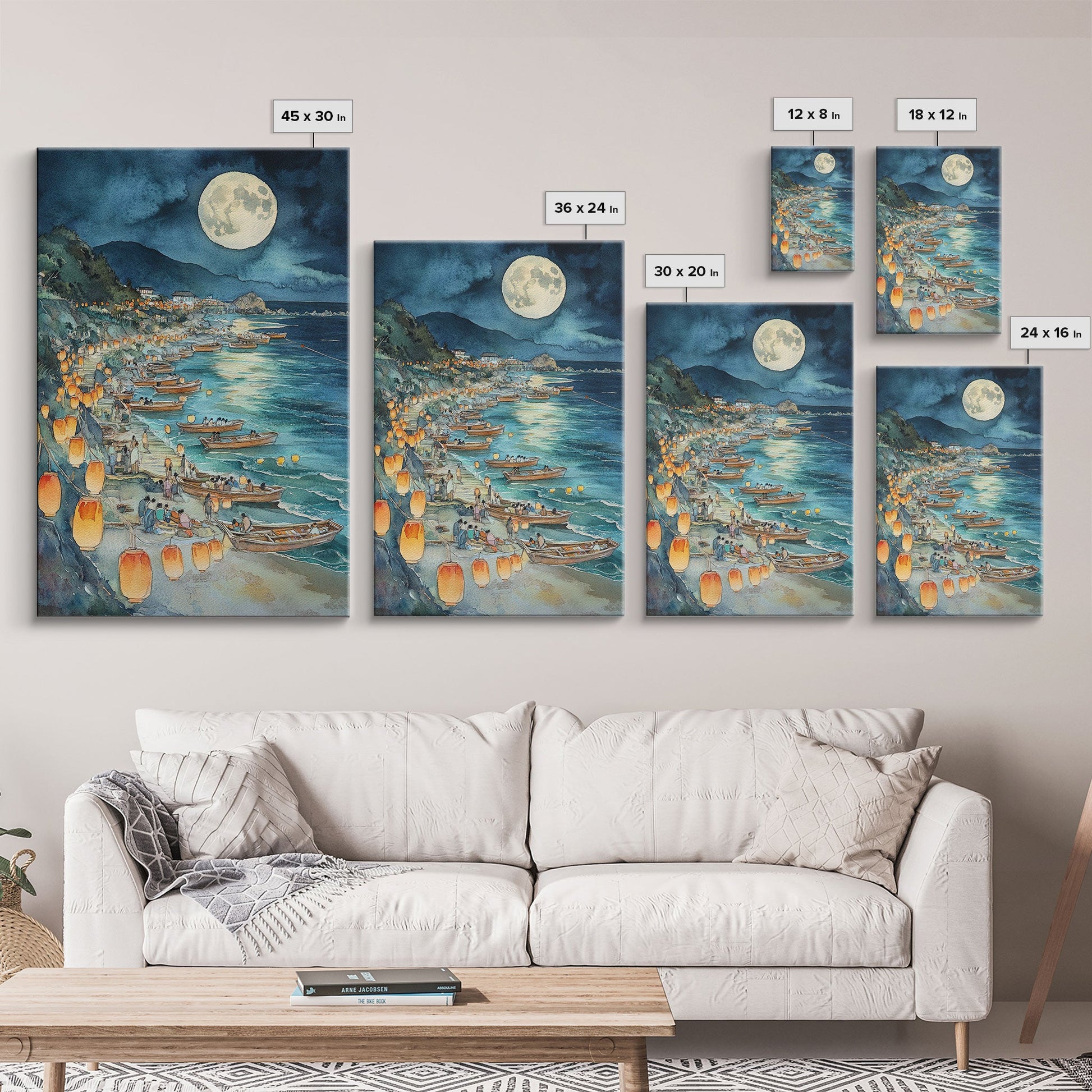 Japanese Paper Lamps Framed Canvas Print, Isamu Noguchi Akari Latern Festival, Christmas Decor