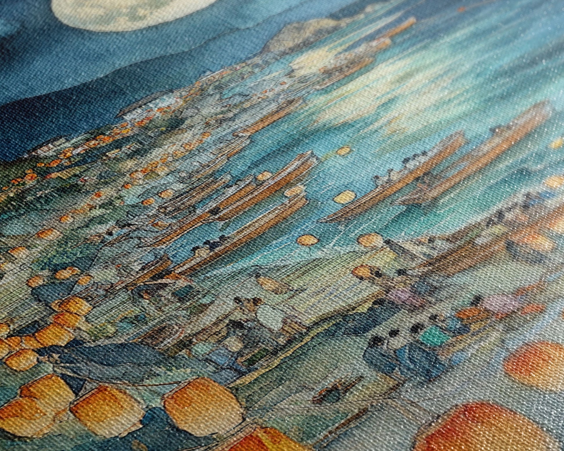 Most of our canvases are made in the USA, with the exception of canvases ordered with the light oak unstained frames, and any large canvases (24x48, 30x60, 16x48 and 20x60) ordered WITH a frame. These are temporarily made in and shipped from Europe, while we try to find a more consistent supplier in the USA.