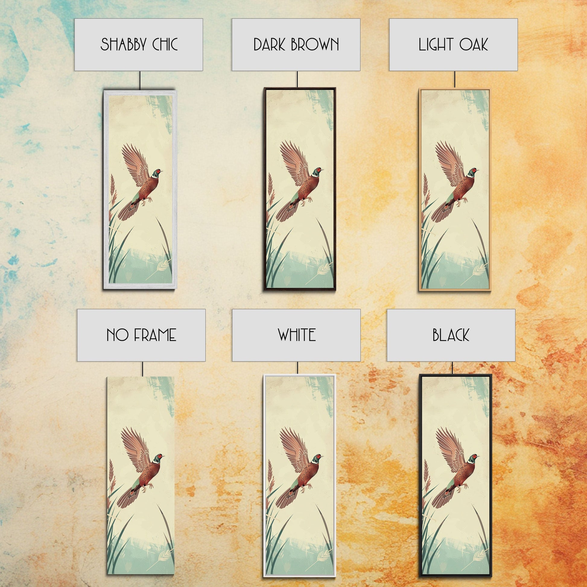 Japanese Skinny Art of Pheasant in Flight with Graceful Wings and Earthy Tones – Framed Canvas Print