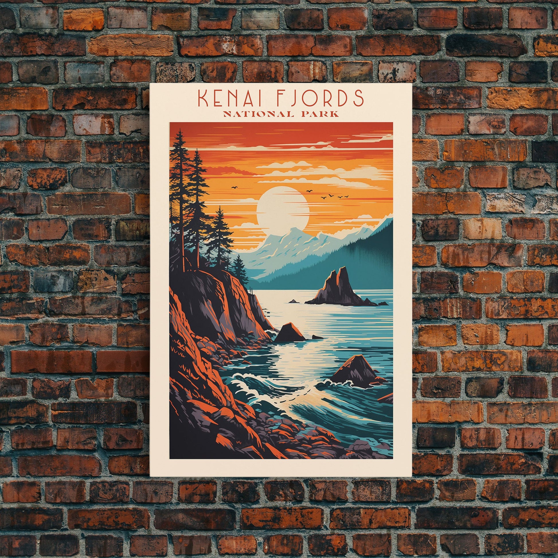 Kenai Fjords National Park Alaska Travel Art, National Park Print, Minimalist Travel Art, Midcentury Modern Style Landscape Painting