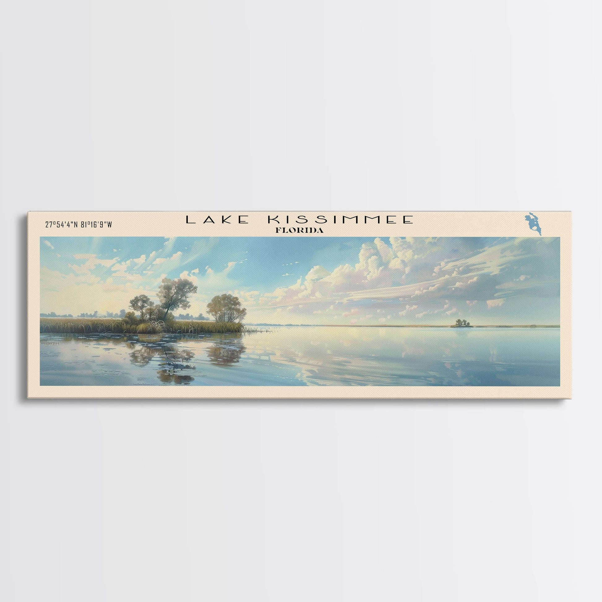 Lake Kissimmee Florida Framed Canvas Print, Lake House Decor, Panoramic Wall Art, Travel Poster, Scenic Lake Painting, Nature Art